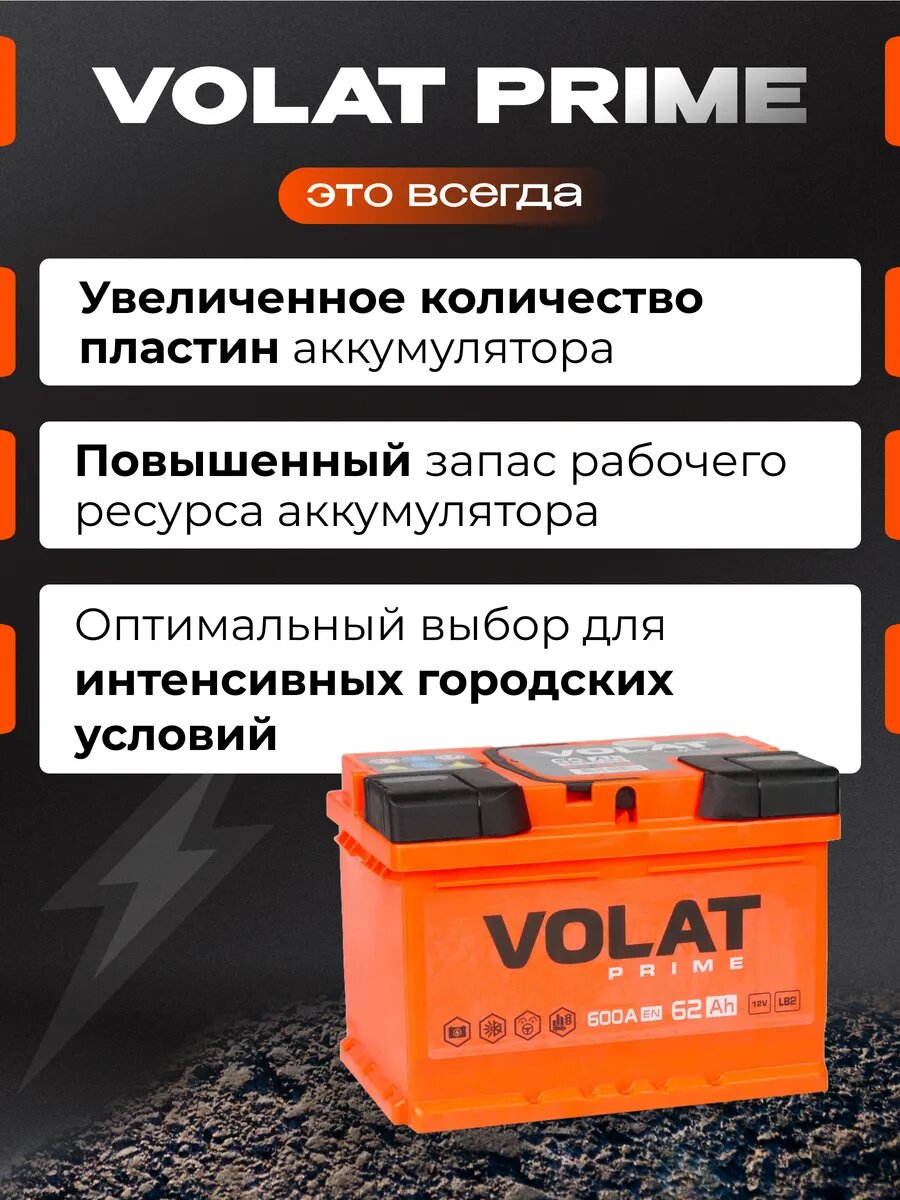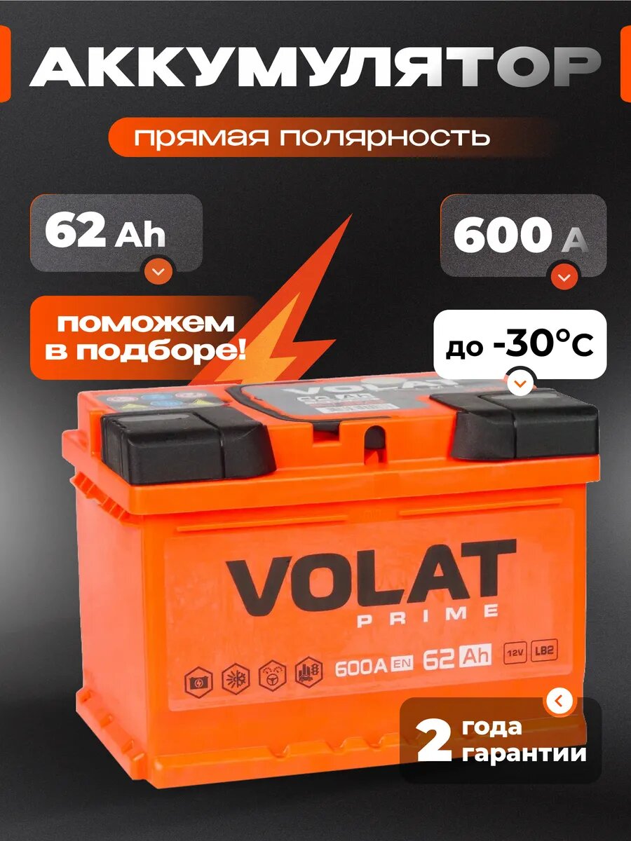 Купить Аккумулятор автомобильный VOLAT Prime (низкий) 62 Ah 600 A прямая полярность 242x175x175