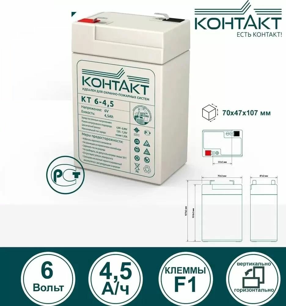 Аккумулятор Контакт КТ 4.5-6В 4.5Ач (6V 4.5Ah) для детского электромобиля, аварийного освещения, весов, GPS оборудования интересное: