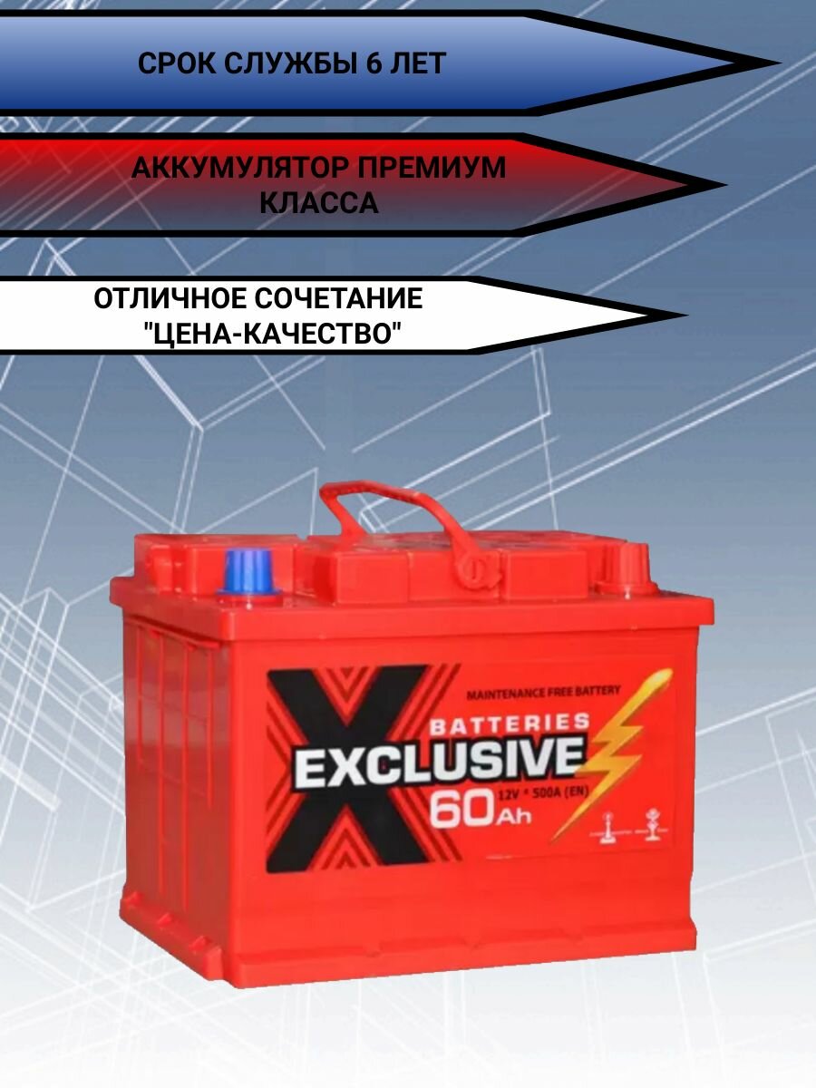 Купить Автомобильный аккумулятор 12v EXCLUSIVE 6ст-60 Ач обратная полярность на легковую машину Hyundai Solaris, Creta, Elantra, Daewoo Nexia, Kia Rio, Sportage, Ceed