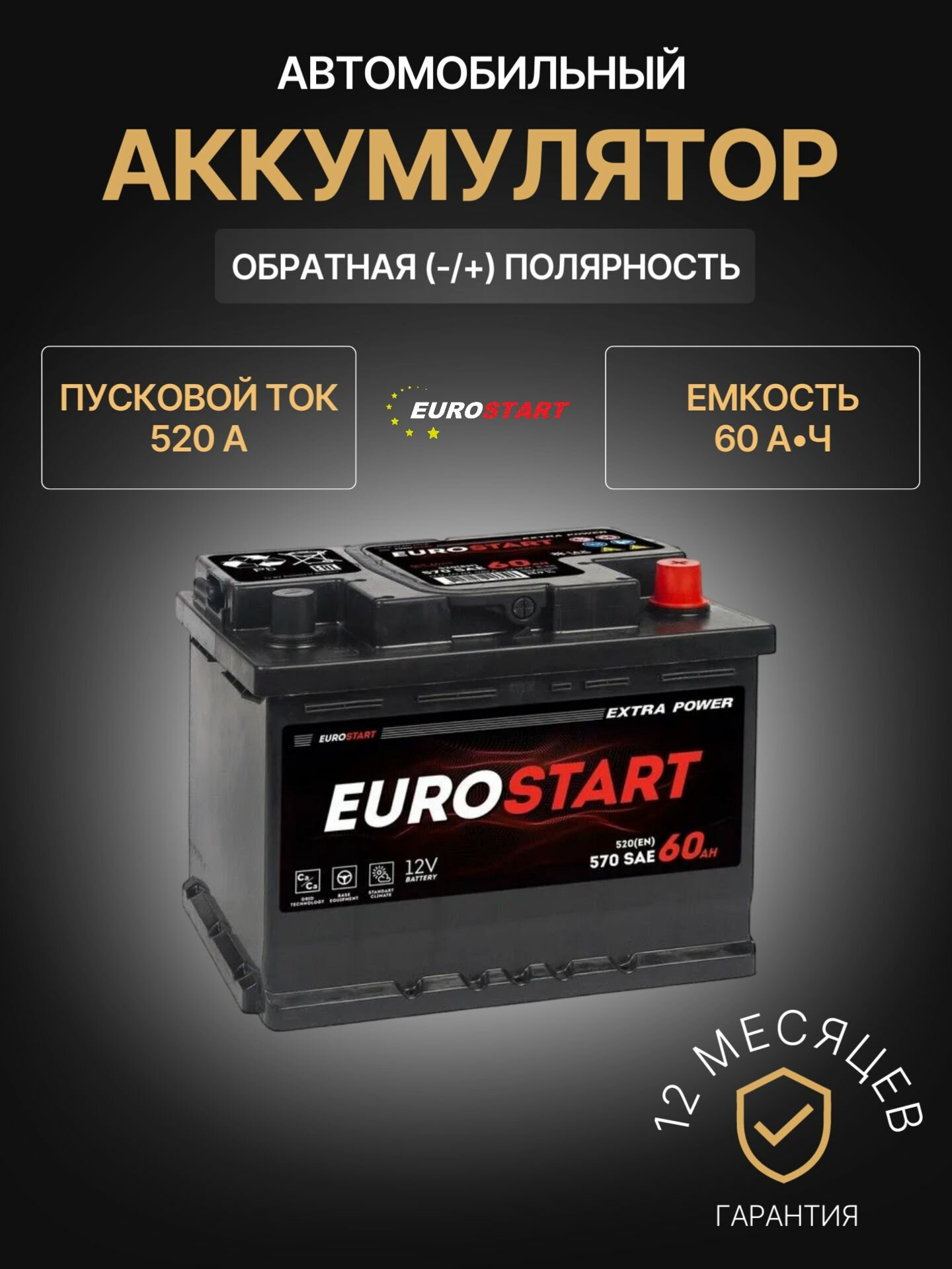 Аккумулятор автомобильный EUROSTART Extra Power EU600 12В 60Ач 520А интересное: