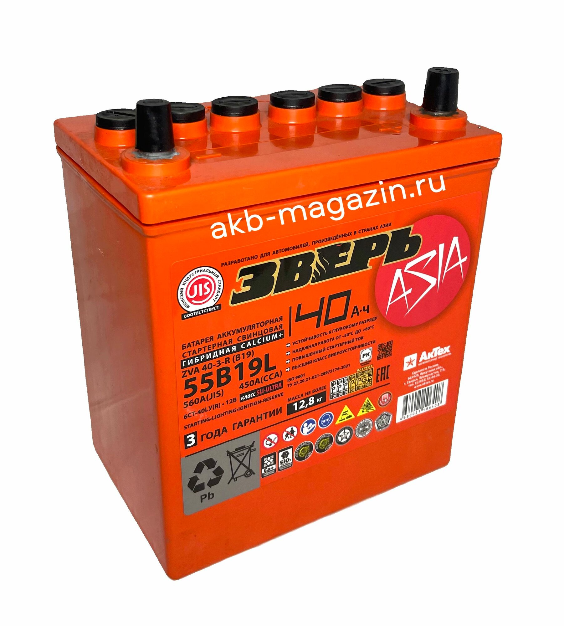 Купить Автомобильный аккумулятор Зверь 40 Ач (55B19L) 450A обратная полярность