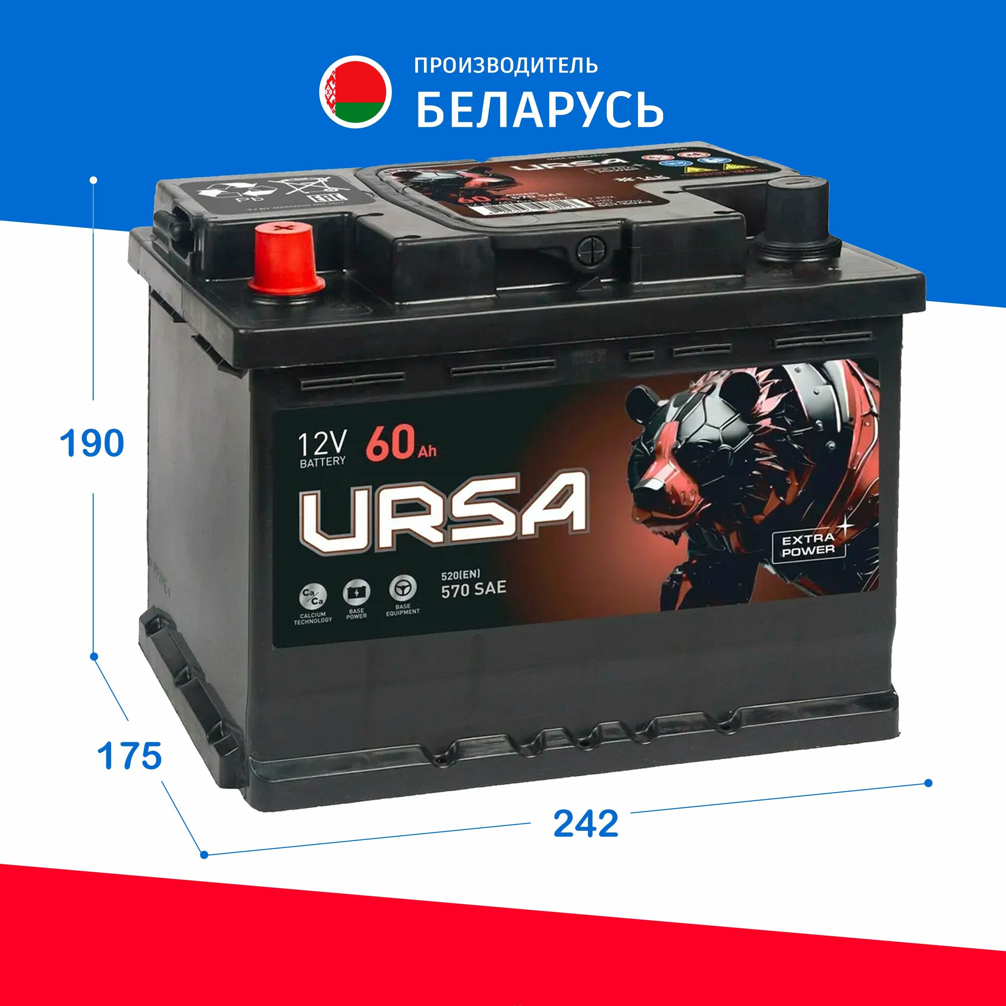 Автомобильный Аккумулятор URSA Extra Power 60Ah прям. пол. 520А 242x175x190 интересное: