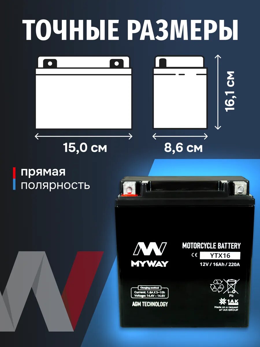 Аккумулятор на мотоцикл, квадроцикл, трицикл 12v 16ah AGM интересное: