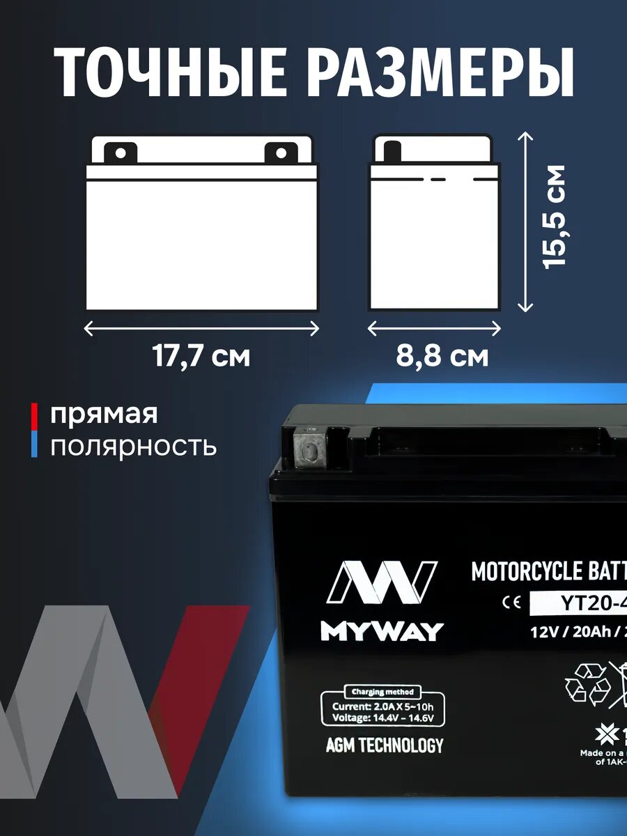 Аккумулятор для мотоцикла, квадроцикла, мопеда 12v 20ah AGM интересное: