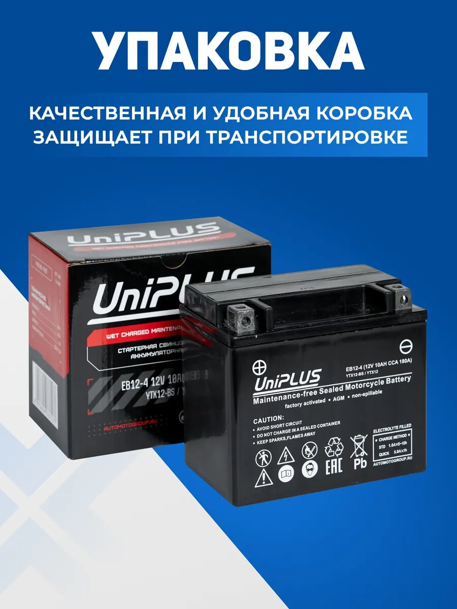 Аккумулятор для мотоцикла Uniplus 12v 10Ah AGM, на скутер мопед интересное: