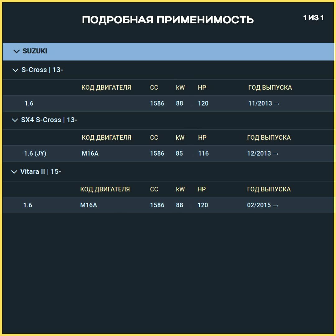 | Модель автомобиля | Suzuki SX4 / Suzuki Vitara |