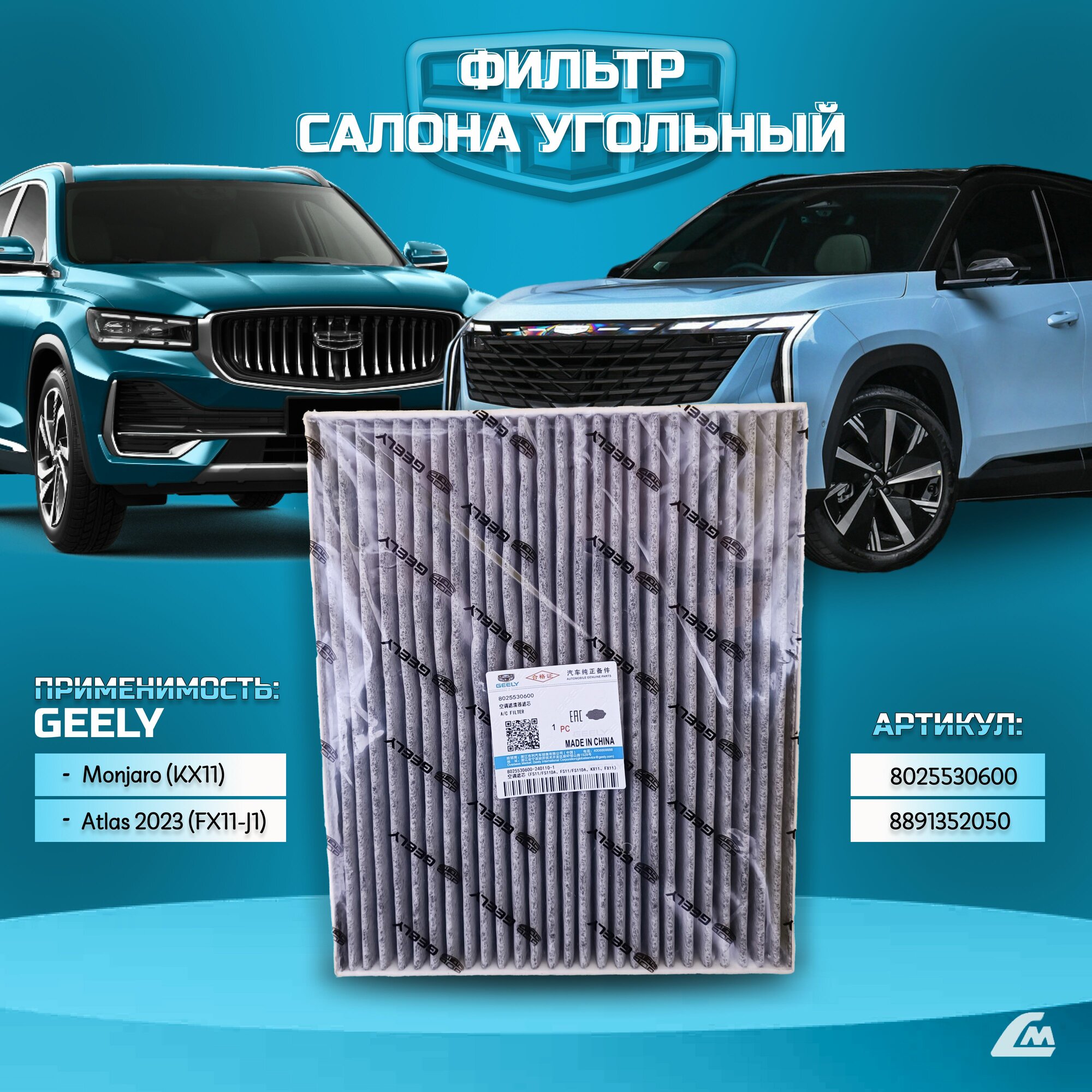 Комплект фильтрами Geely Monjaro 2.0 (KX11) 2022- ТО-1 с оригинальными фильтрами арт. GMJ20TO1