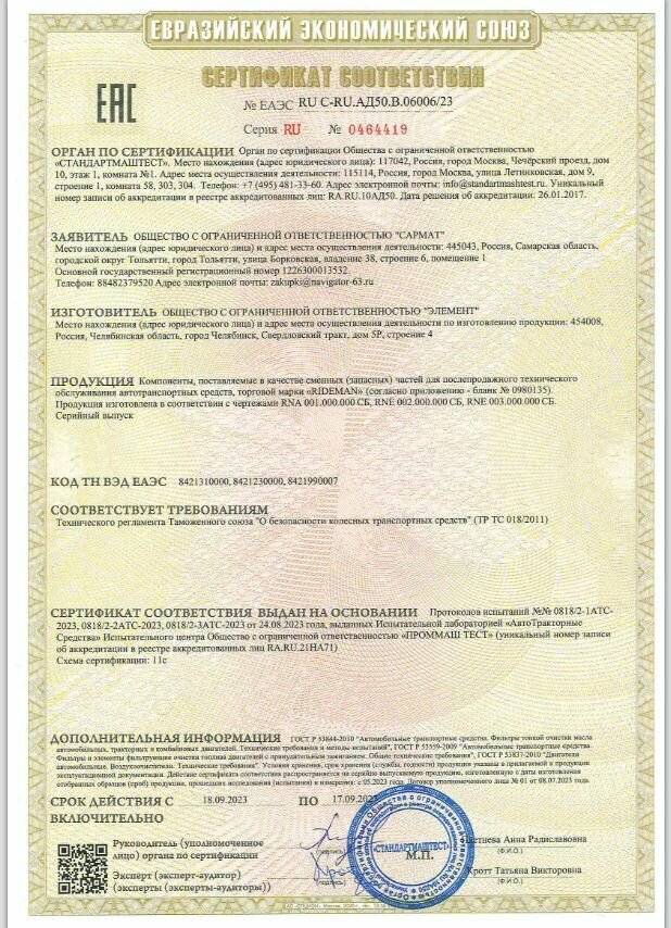 | Комплектация | Фильтр воздушный RIDEMAN 16 клап., Renault, Lada Largus Лада Ларгус -1 шт |