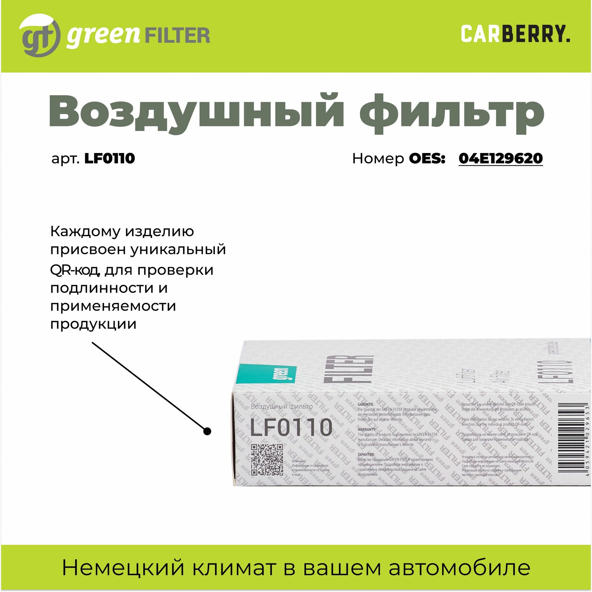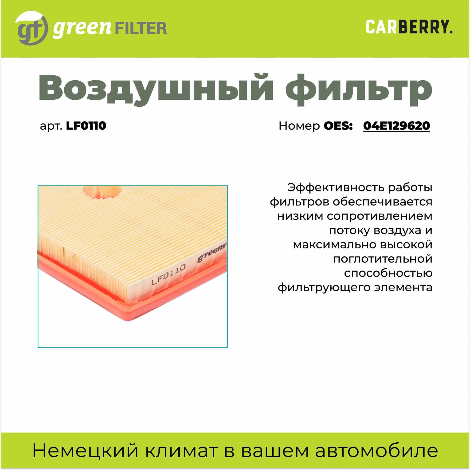 Фильтр воздушный Green Filter LF0110 для AUDI A3, SEAT Leon и Ibiza для SKODA Octavia для VOLKSWAGEN Golf, Jetta и Polo интересное: