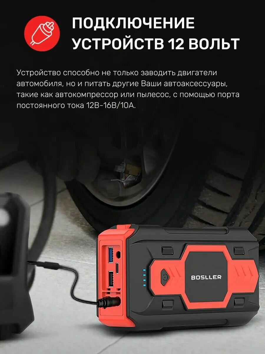 Пусковое зарядное устройство BOSLLER BoostPow L8 для аккумулятора автомобиля, бустер автомобильный пусковой для запуска машины с фонарем интересное: