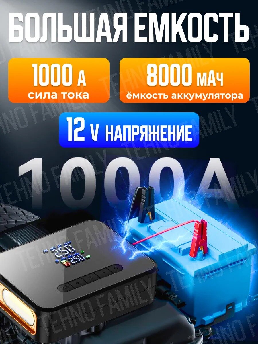 Пусковое зарядное устройство для автомобиля с компрессором, джампстартер 8000 mah, бустер автомобильный пусковой интересное:
