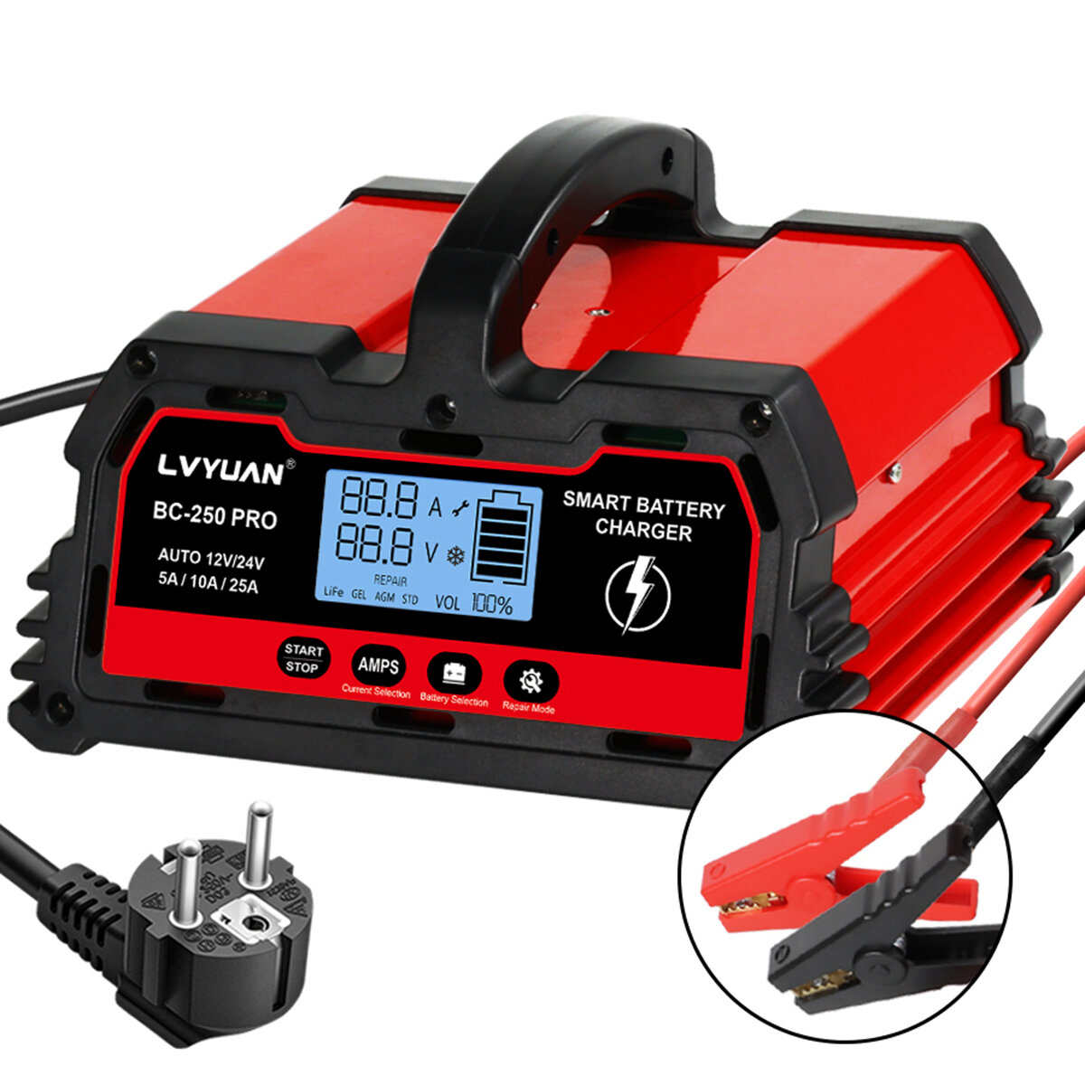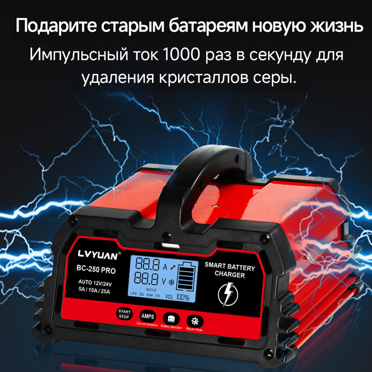 Купить LVYUAN Зарядное устройство для аккумулятора 25A зарядное устройство ремонтного типа с автоматической адаптацией 12В/24В