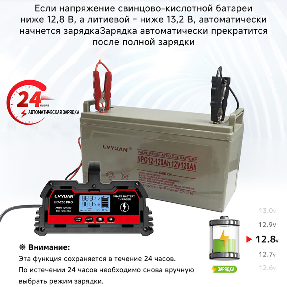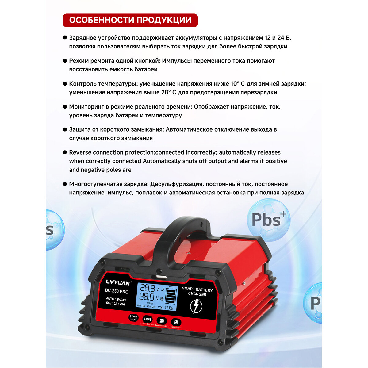 LVYUAN Зарядное устройство для аккумулятора 25A зарядное устройство ремонтного типа с автоматической адаптацией 12В/24В интересное: