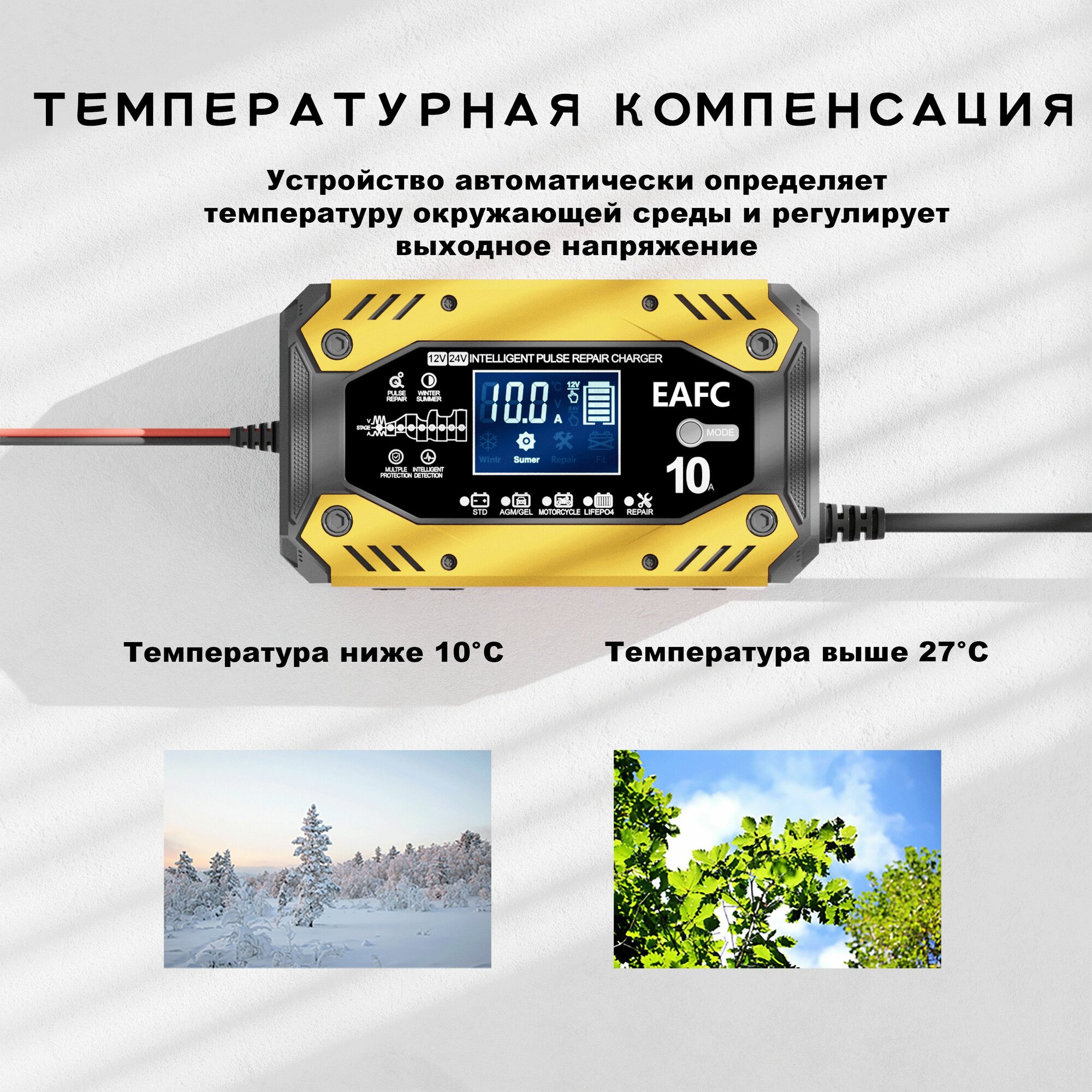 Зарядное устройство для аккумуляторов автомобиля, 12В 10А/24В 5А, 2-150Ач, 140Вт, Желтый интересное: