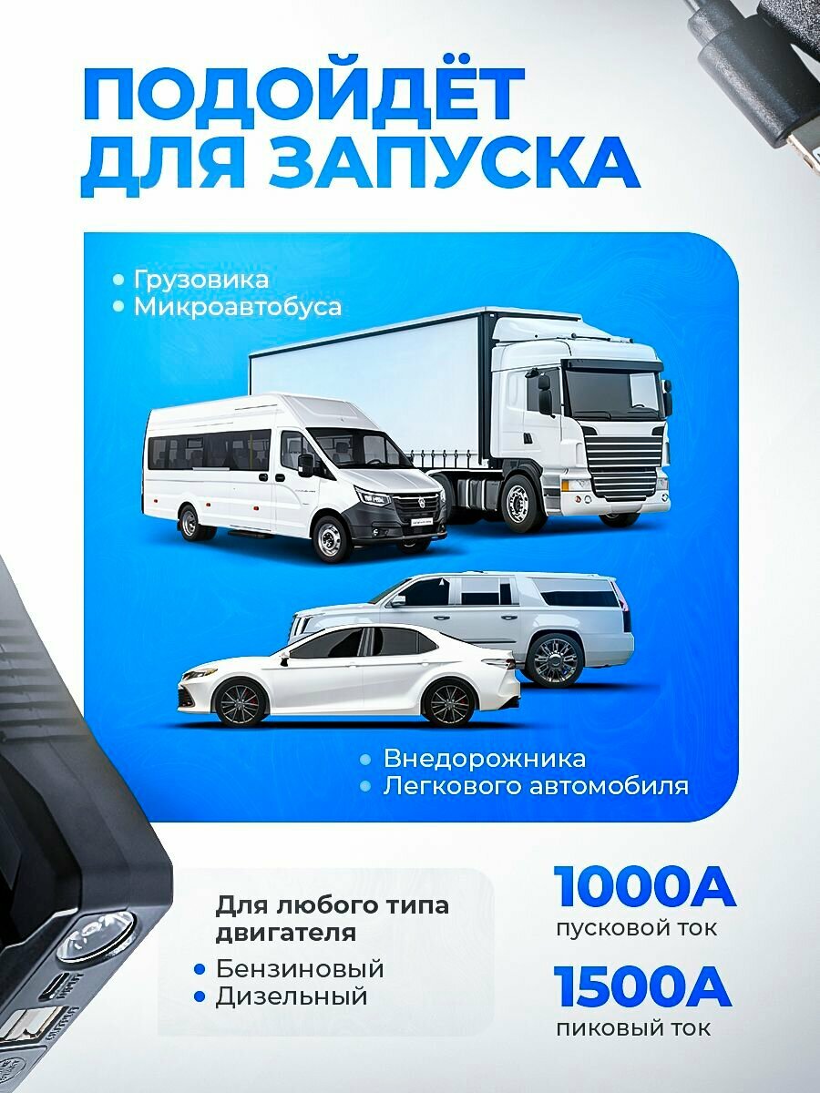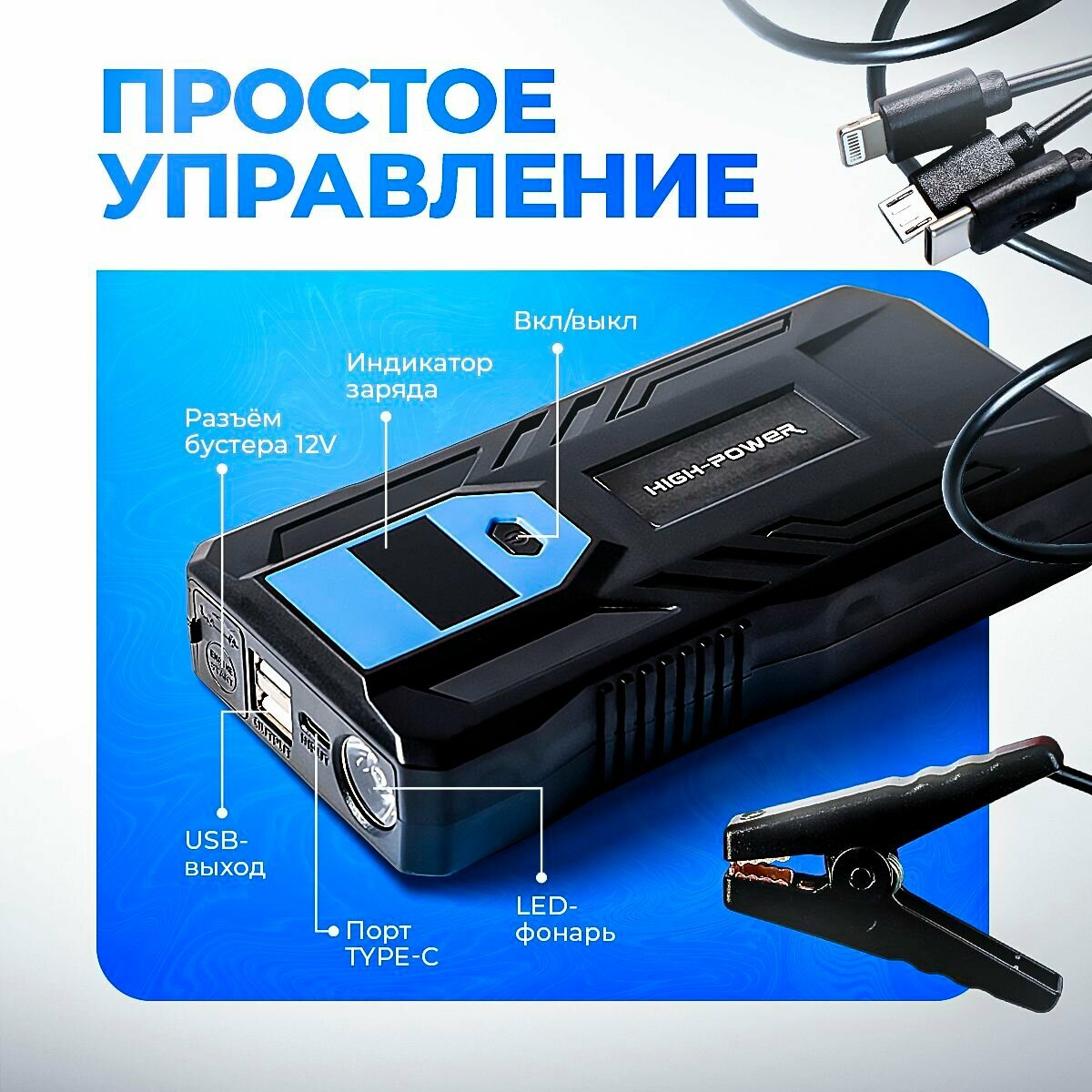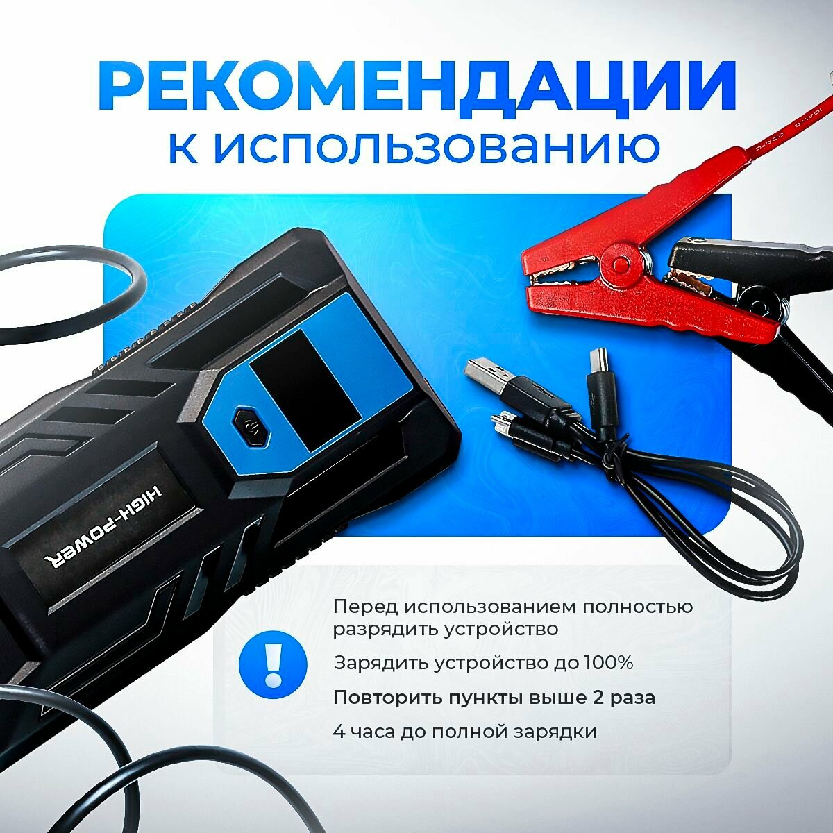 Пусковое зарядное устройство Jump Starter для аккумуляторов автомобиля портативное, 12В, бустер 99800 мАч интересное: