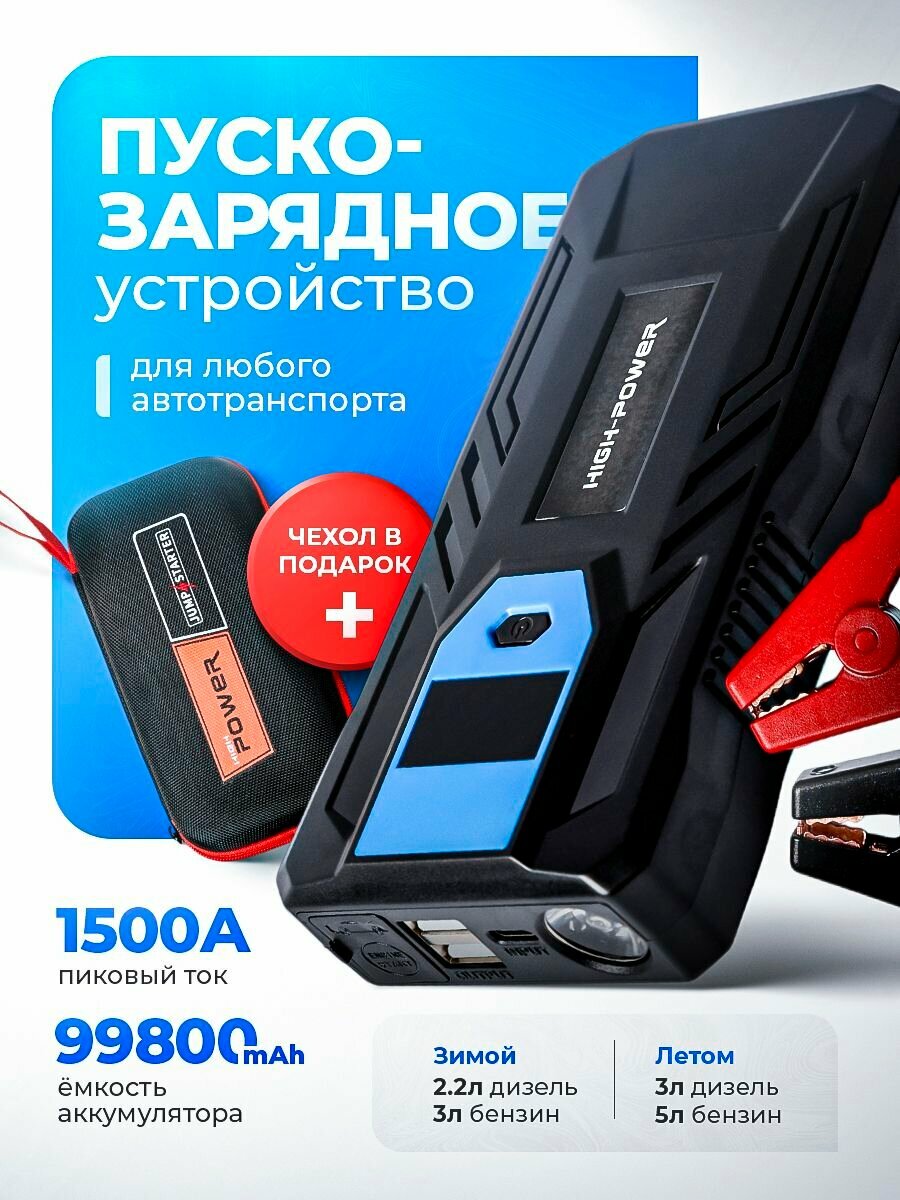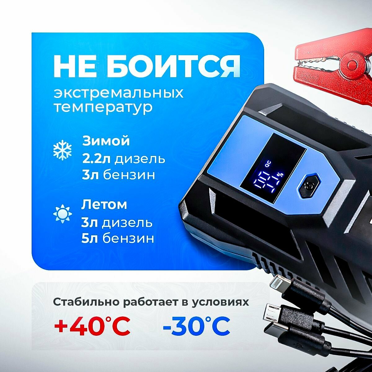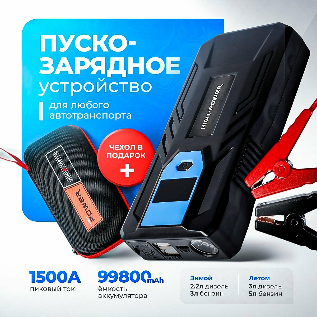 Пусковое зарядное устройство Jump Starter для аккумуляторов автомобиля портативное, 12В, бустер 99800 мАч интересное: