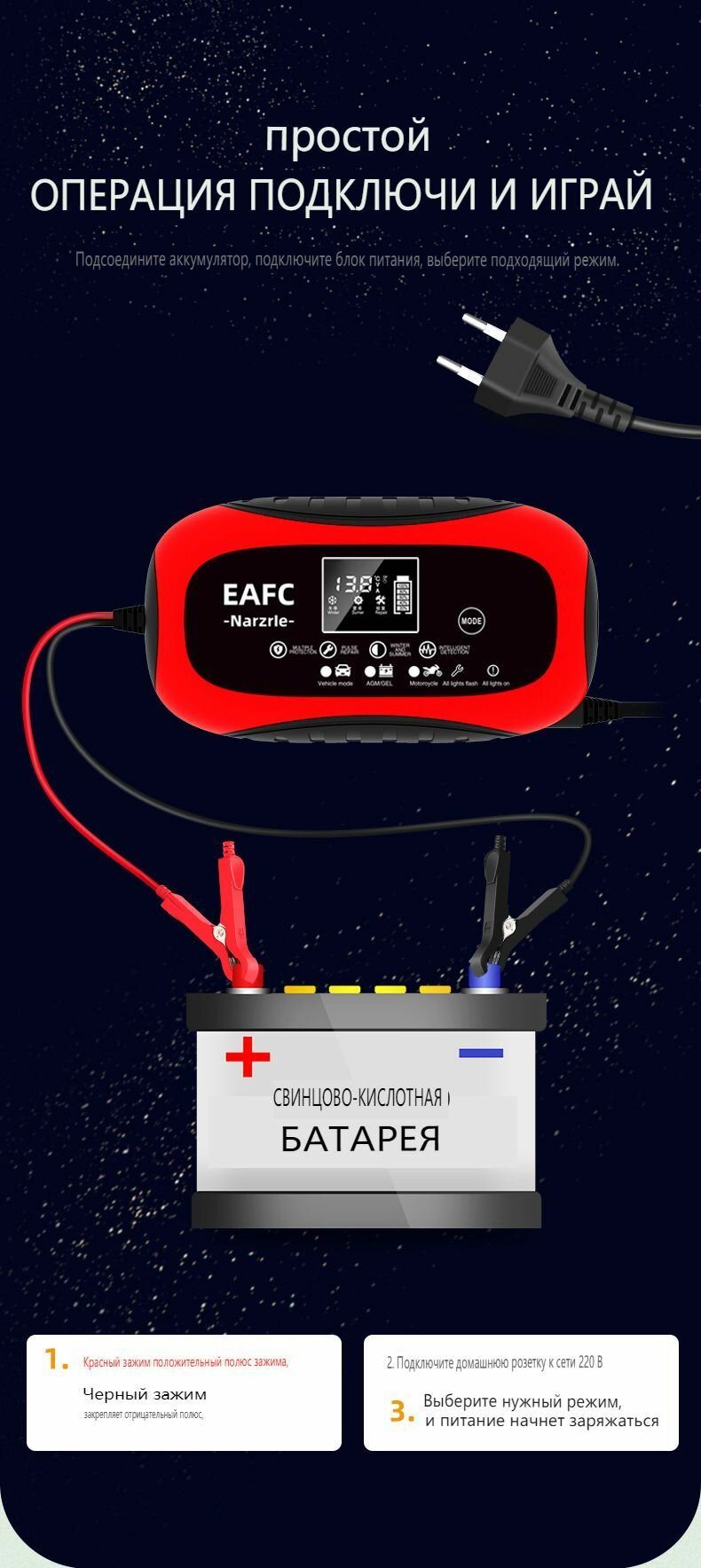 Зарядное устройство для автомобильного аккумулятора автоматическое, Зарядное устройство для АКБ, 12В 8А, 2-100Ач, 90Вт интересное: