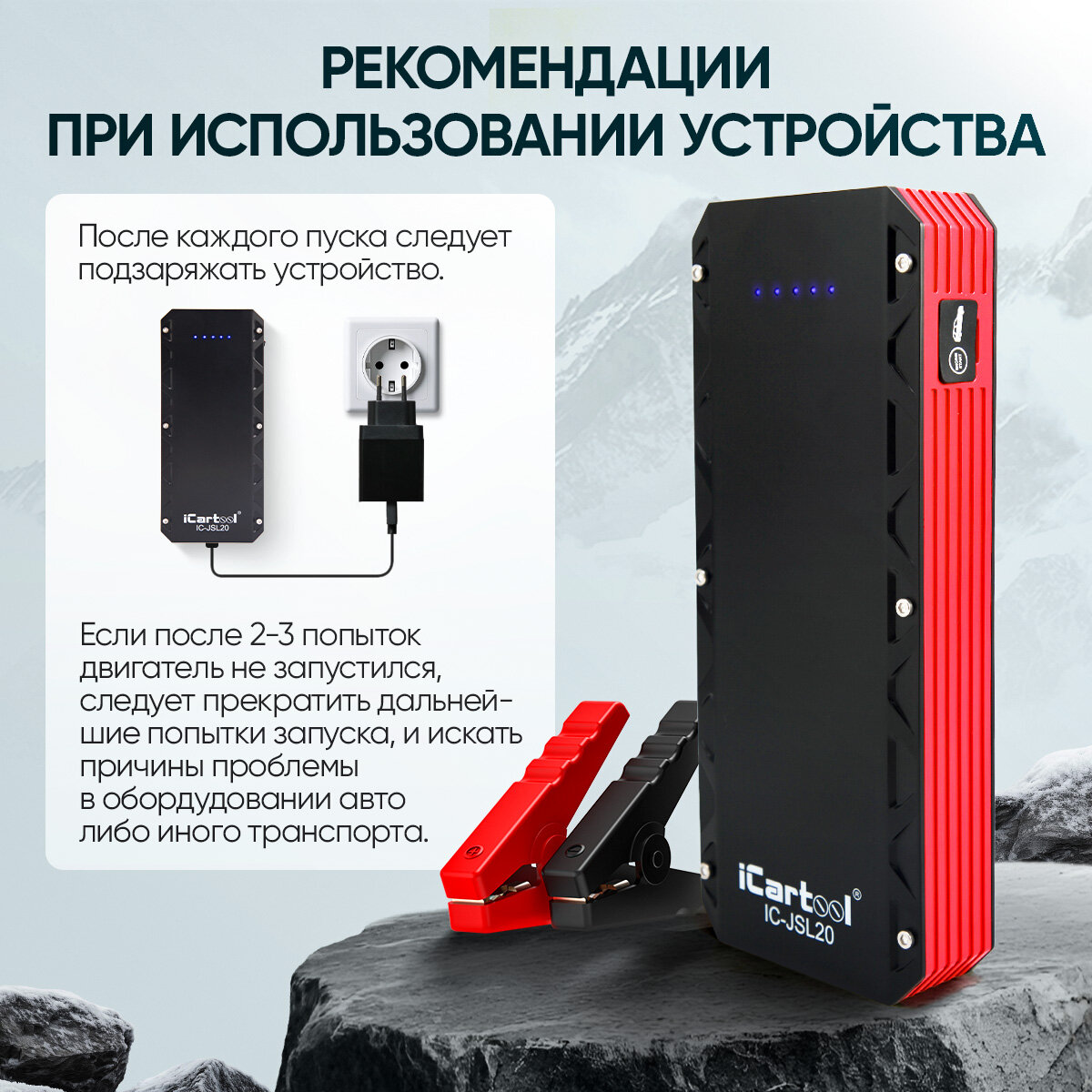 Пусковое устройство 12В, 20 000 мАч, 1000/2000А iCartool IC-JSL20 интересное: