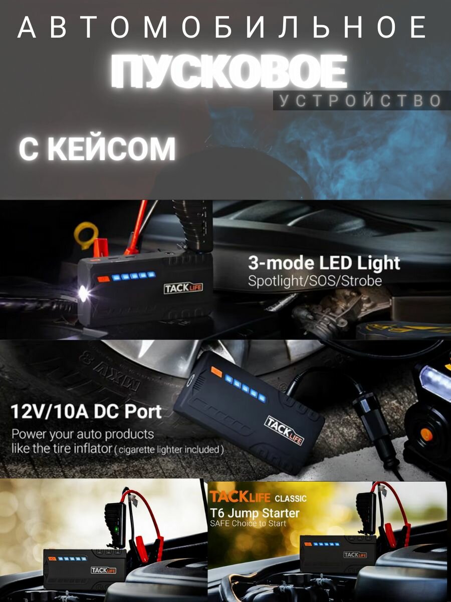 Пусковое зарядное устройство для автомобиля TackLife T6 интересное: