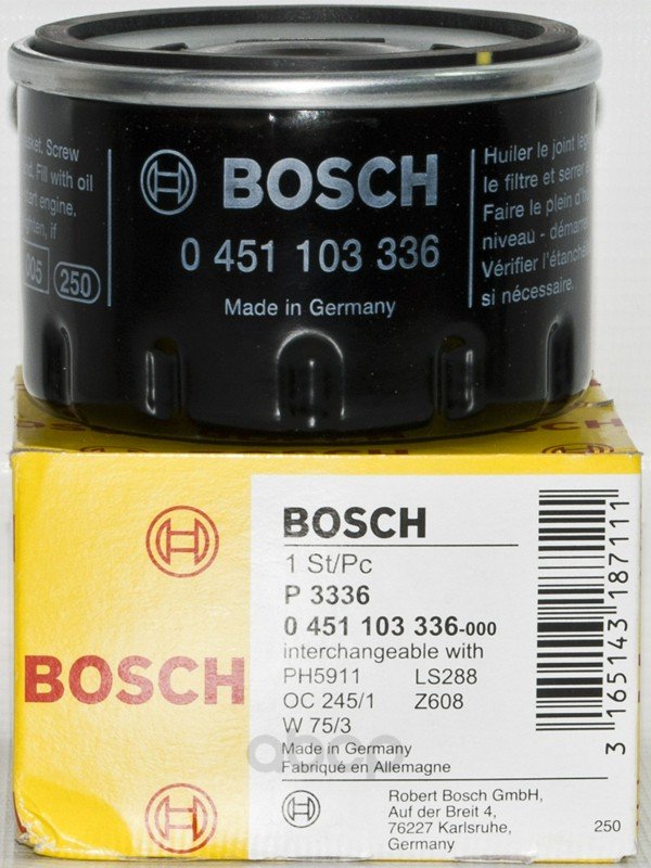 Фильтр Масляный P 3336 Bosch 0451103336 (= W 75/3) Bosch арт. 0451103336 интересное: