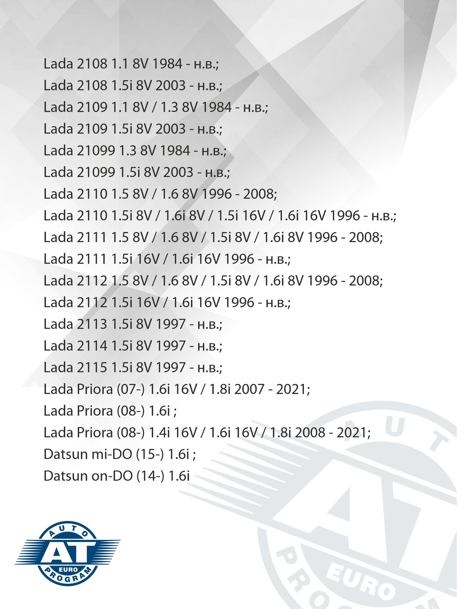 | Модель автомобиля | Datsun mi-DO / Datsun on-DO / LADA 2108 / LADA 2109 / LADA 21099 / LADA Granta / LADA Kalina / LADA Priora |