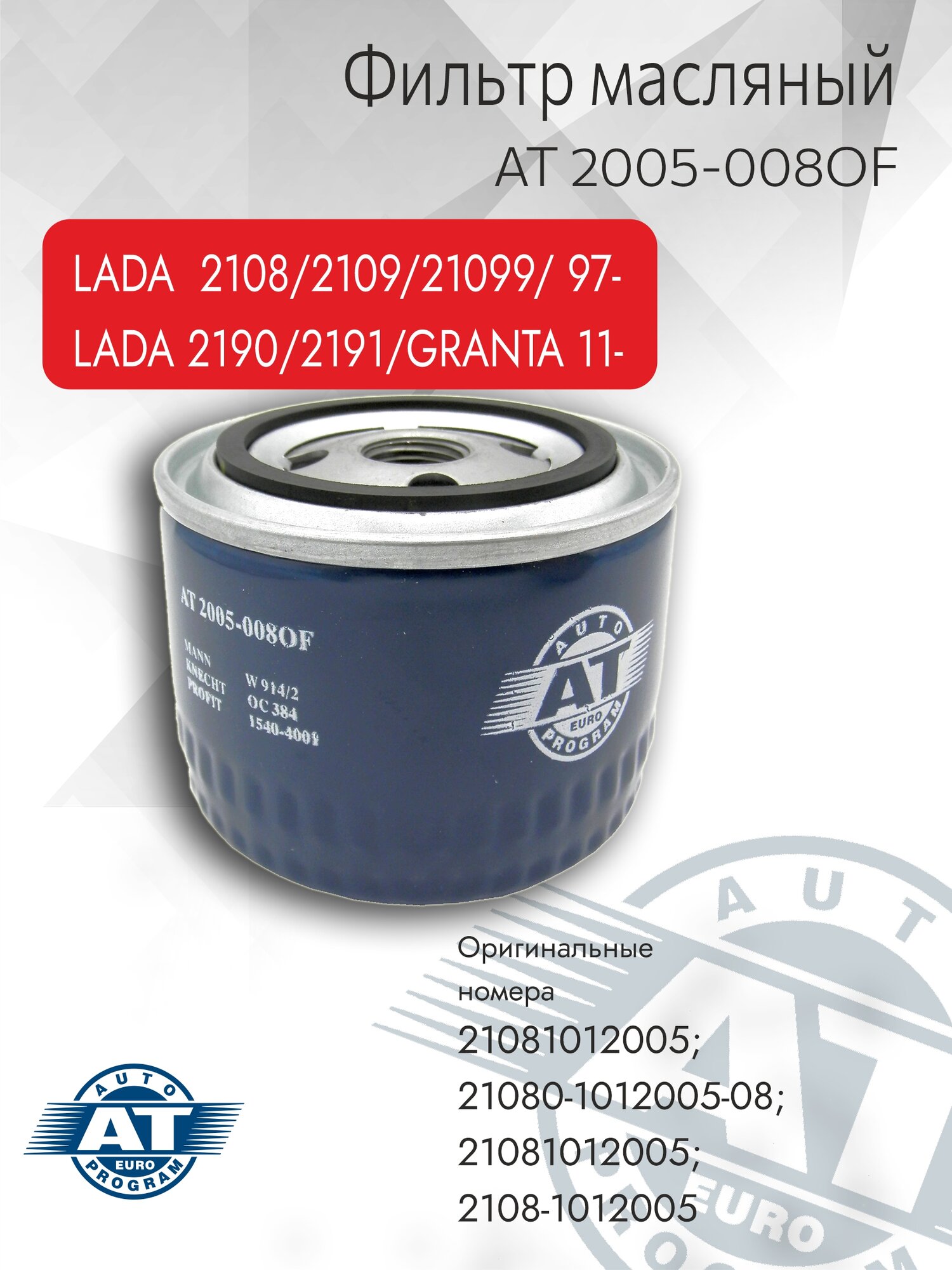 Фильтр масляный AT 2005-008OF ВАЗ LADA Granta 2108-1012005, 3/4-16UNF интересное: