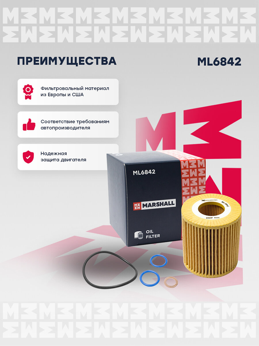 Фильтр масляный Volvo S40 II 04-, S60 I, II 01-, S80 I, II 01-, XC70 I, II 02-, XC90 I 02- Marshall MARSHALL ML6429 | цена за 1 шт