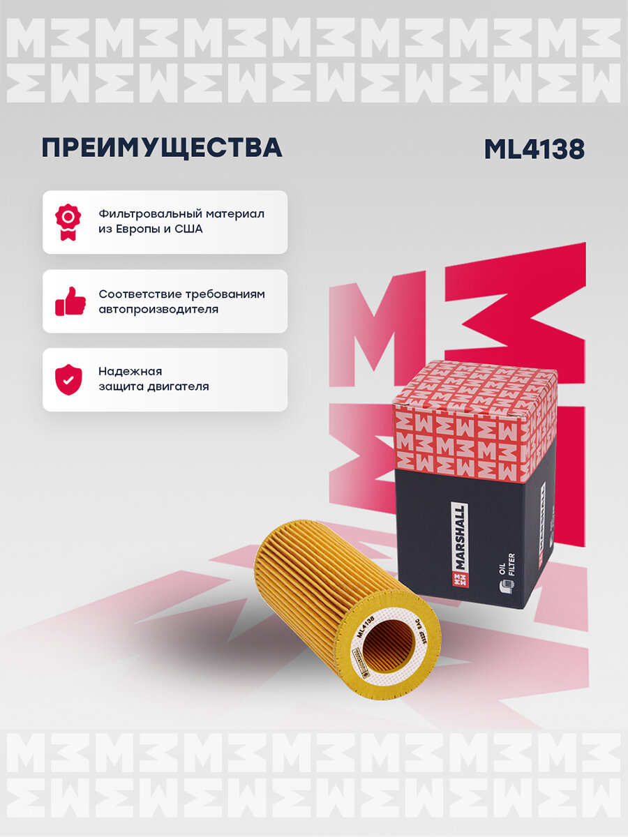Фильтр масляный Volvo S40 II 04-, S60 I, II 01-, S80 I, II 01-, XC70 I, II 02-, XC90 I 02- Marshall MARSHALL ML6429 | цена за 1 шт