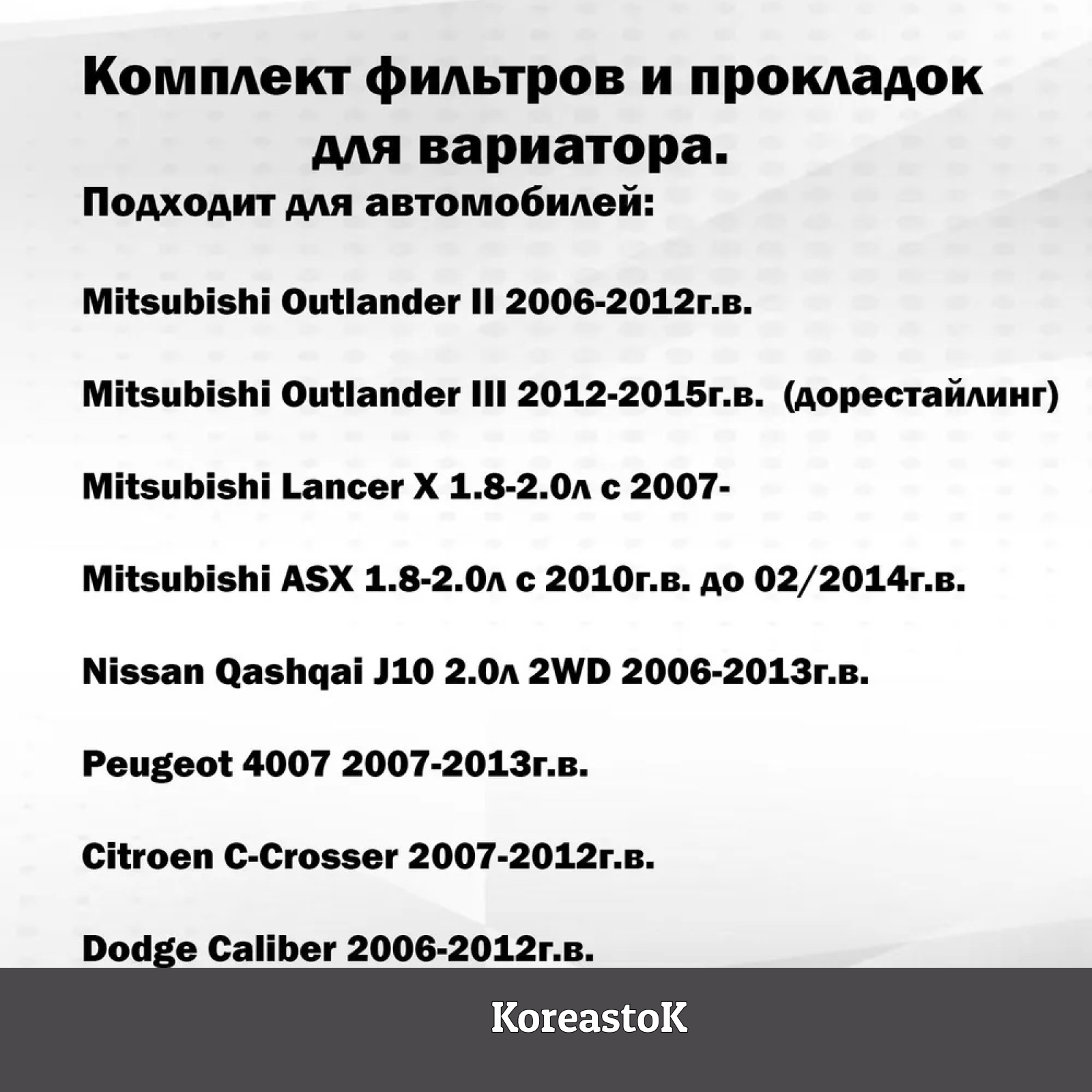 Купить Полный комплект фильтров и прокладок на вариатор Mitsubishi Outlander до 2015г; Lancer X; ASX до 2014г