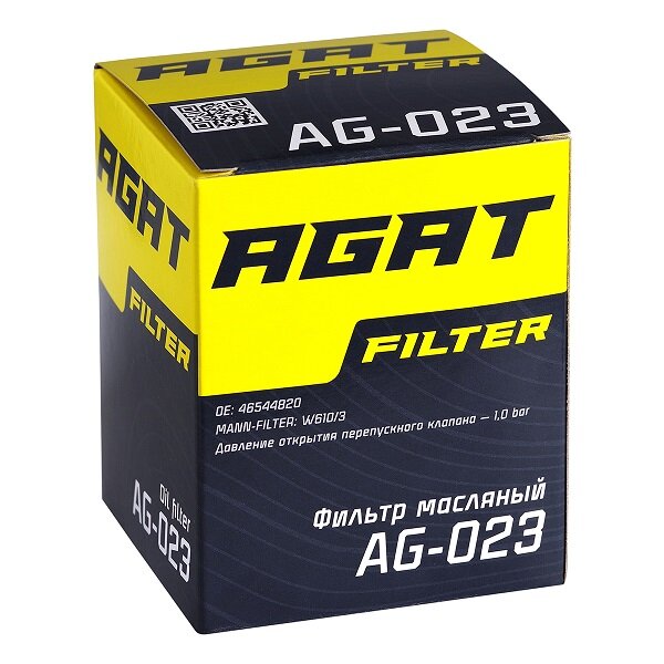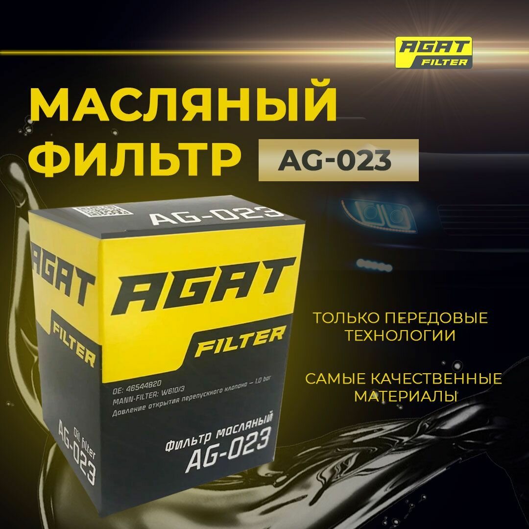 Купить Масляный фильтр AGATfilter AG-023 аналог MANN-FILTER W610/2, W610/6, W610/3, W610/7, W67 OE: 46544820
