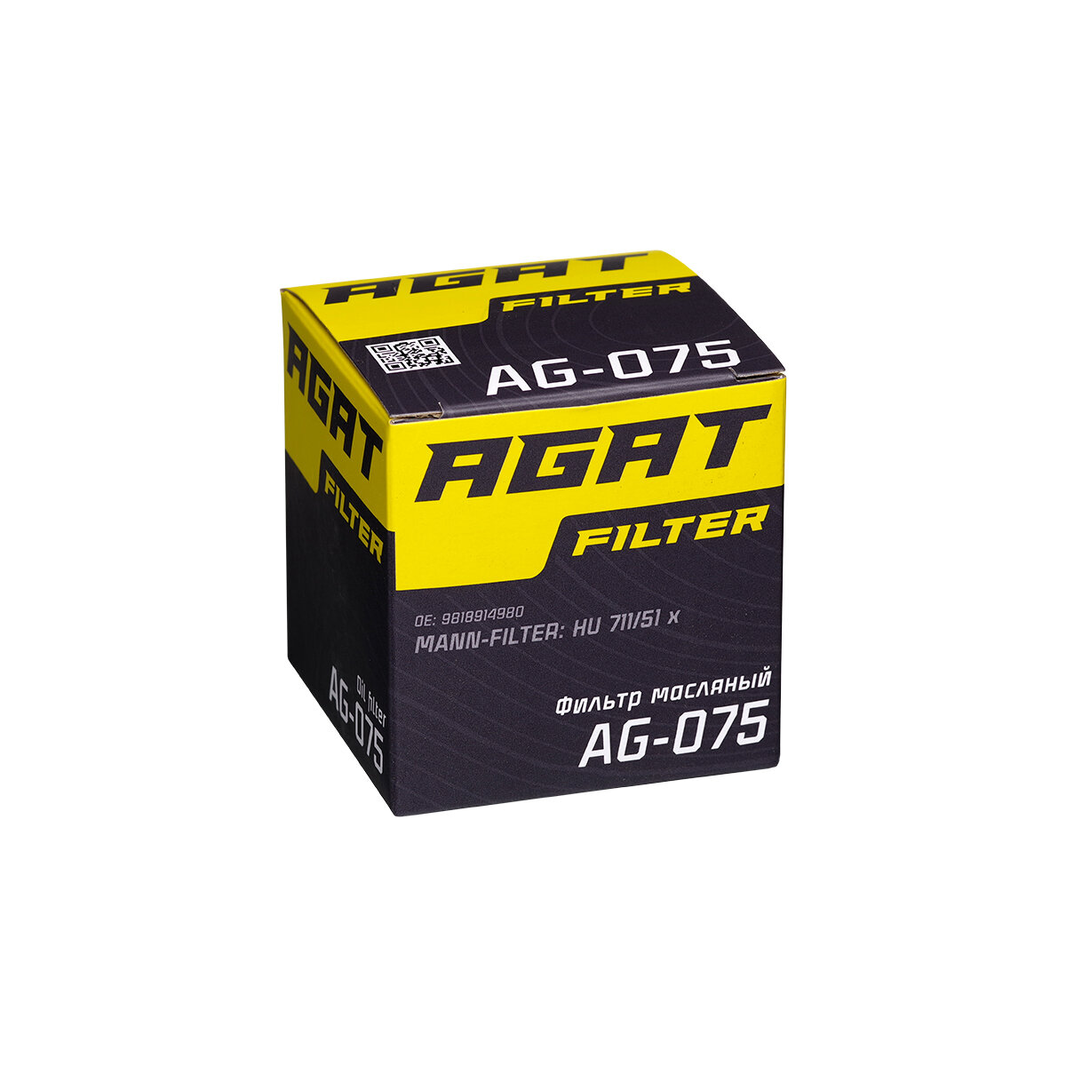 Масляный фильтр AGATfilter AG-026 аналог MANN-FILTER W67/1 OE: 152089F60A