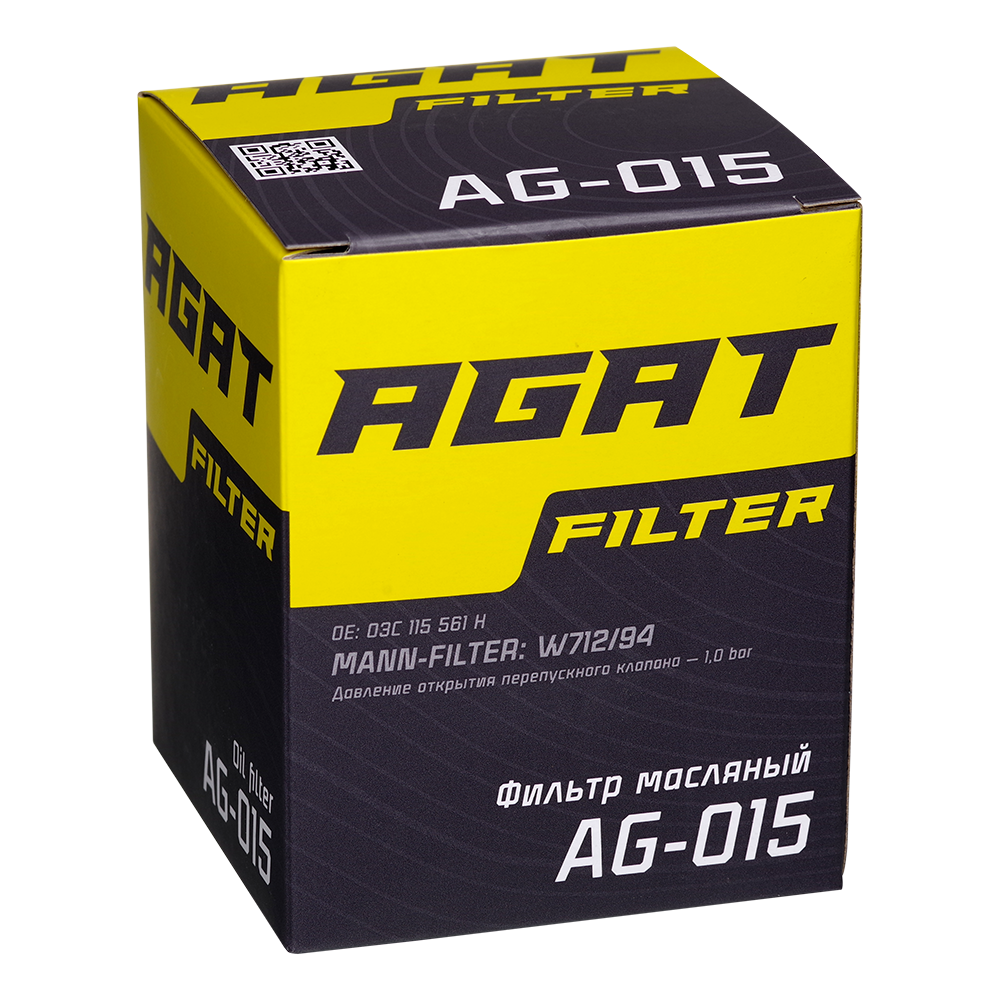 Масляный фильтр AGATfilter AG-017 аналог MANN-FILTER W712/95 OE: 04E115561H