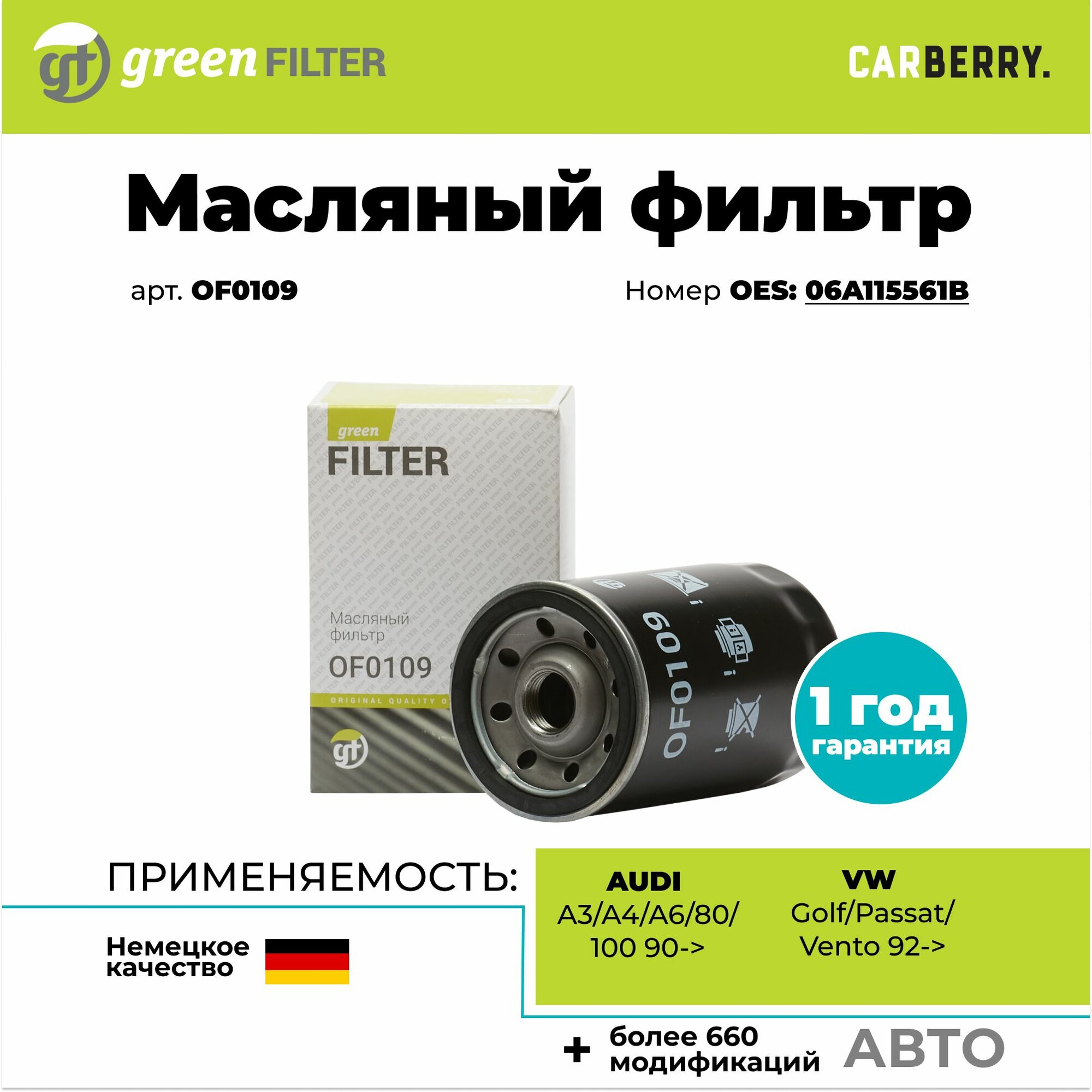 Масляный фильтр Green Filter OF0109 для AUDI A3, A4, A6, 80, 100 90, VOLKSWAGEN Golf, Passat, Vento 92 интересное: