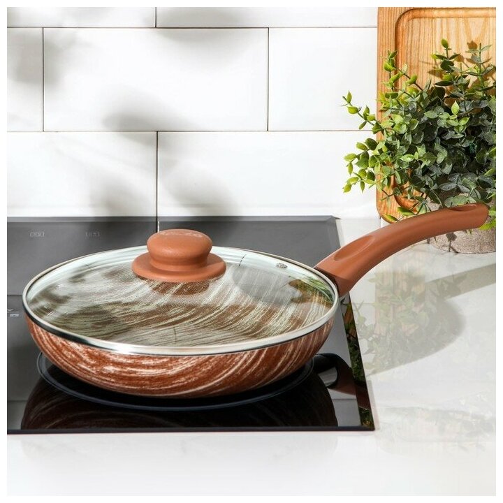 Сковорода глубокая Kantry, d=28 см, стеклянная крышка, пластиковая ручка, антипригарное покрытие, цвет коричневый