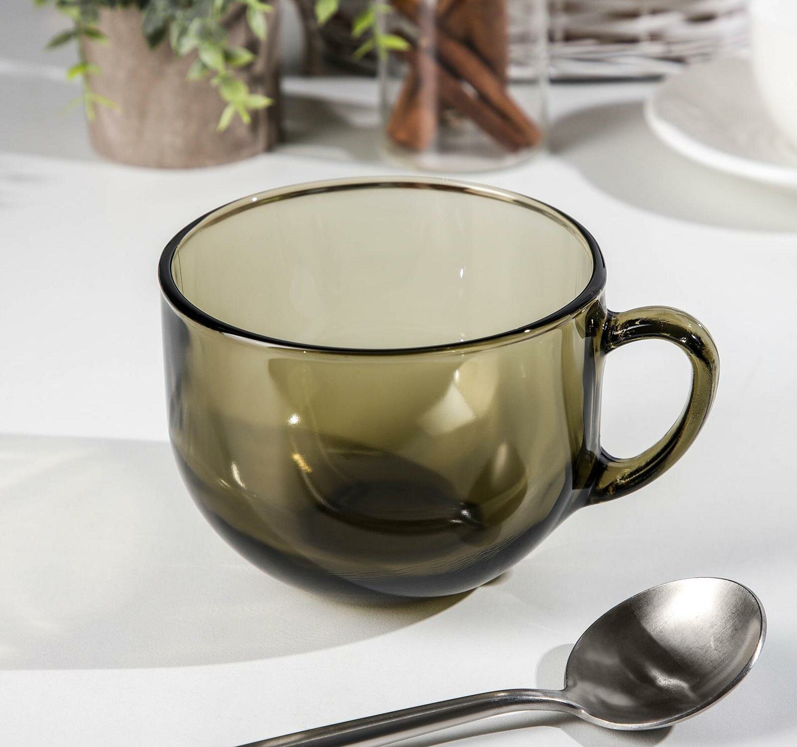 Бульонница с ручкой 670мл, дымчатое стекло, "Гигантеска", 62043