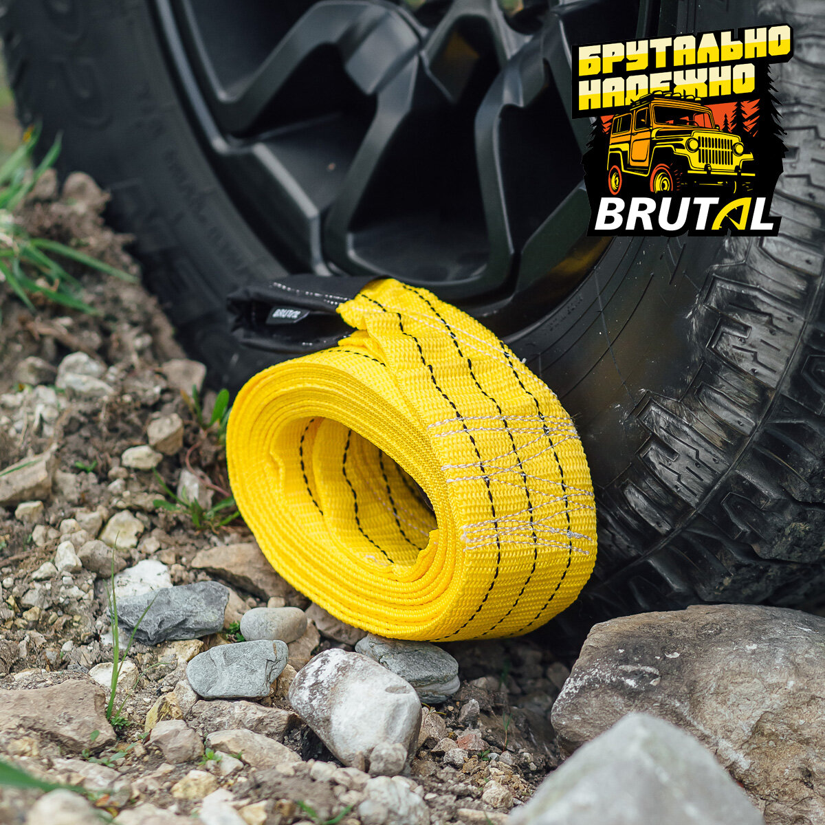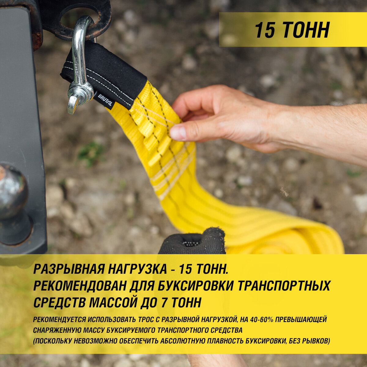 Трос буксировочный автомобильный BRUTAL 15 тонн, без шаклов, сумка интересное: