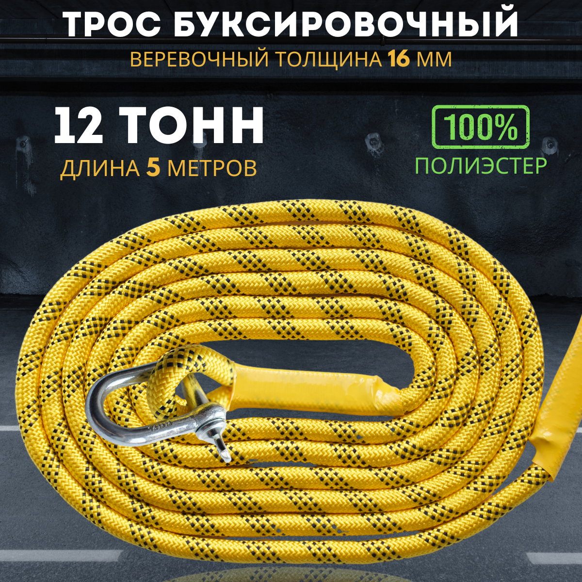 Трос буксировочный веревочный 12 тонн 5 метров с шаклами АВТОТРОС. РФ интересное: