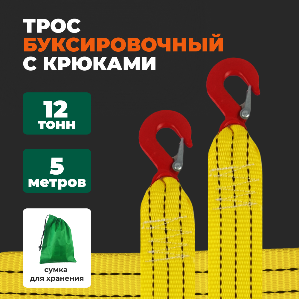 Трос буксировочный автомобильный Mirazen 12т, 2 крюка с сумкой для хранения интересное: