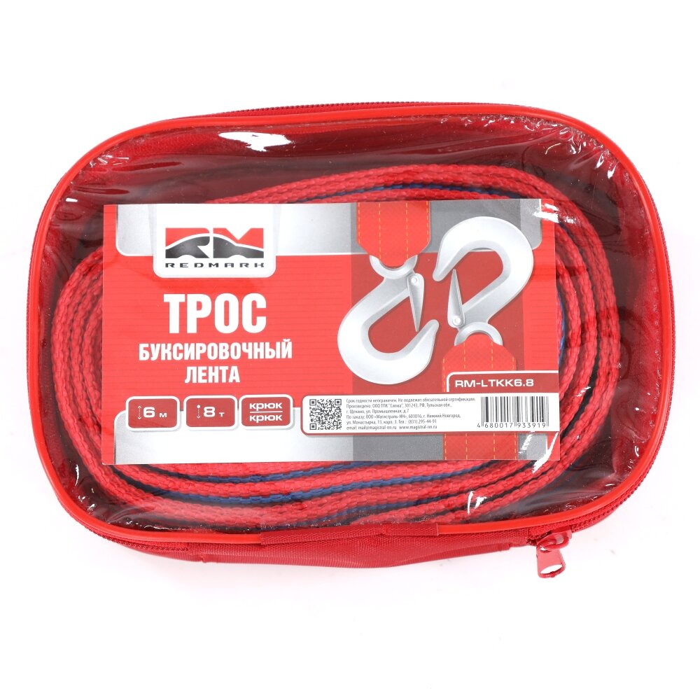 Трос буксировочный REDMARK, ленточный, 6 м, 8 т, крюк/крюк, синий интересное: