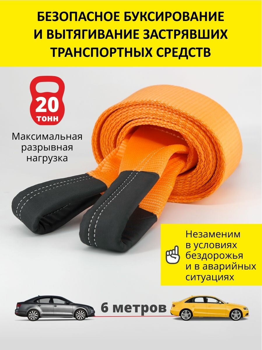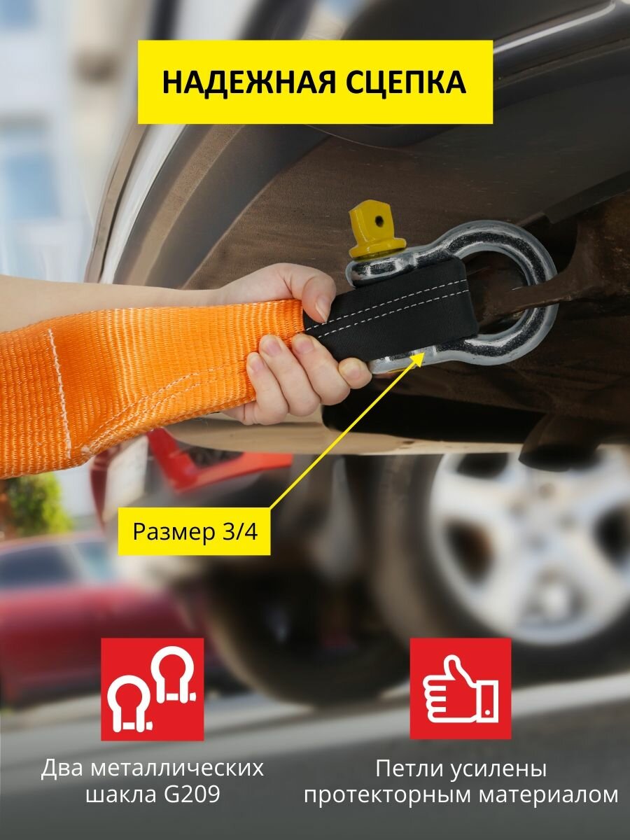 Буксировочный трос ClimArt, динамический, стропа, с шаклами, до 20т, 6м, черный/оранж интересное: