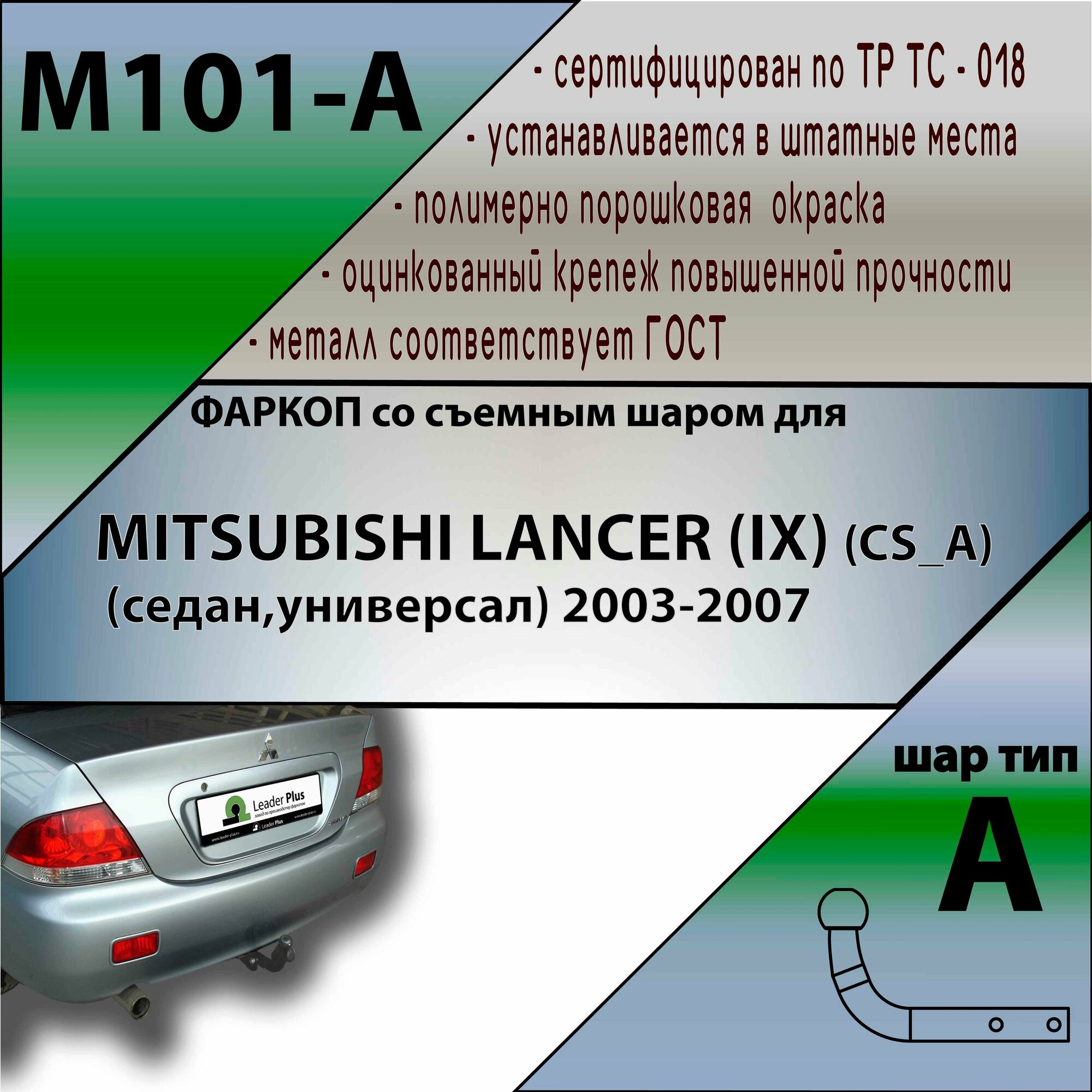 Фаркоп M101-A Лидер плюс для MITSUBISHI LANCER (IX) (CS_A) (седан, универсал) 2003-2007 (без электрики) интересное: