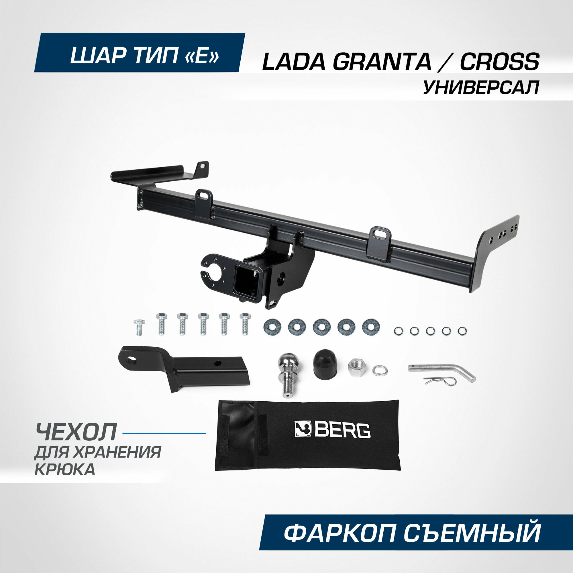 Фаркоп под квадрат Berg для Lada Granta I рестайлинг SW 2018-н. в./Granta Cross SW 2018-н. в, шар E, 900/75, F.6017.007 интересное:
