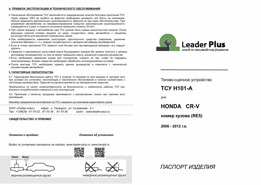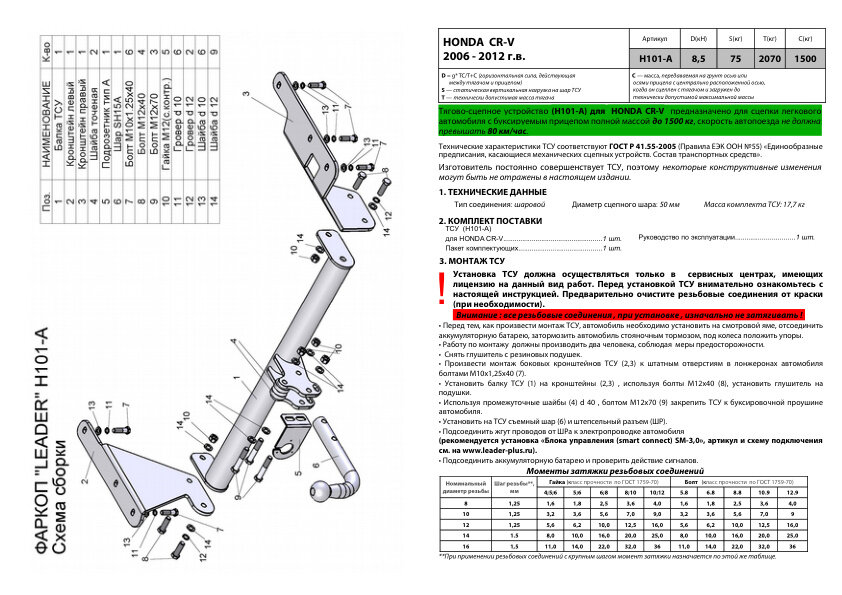 Фаркоп для Honda CR-V (Хонда СРВ) (RE5) (2006-2013) Лидер-Плюс H101-A интересное: