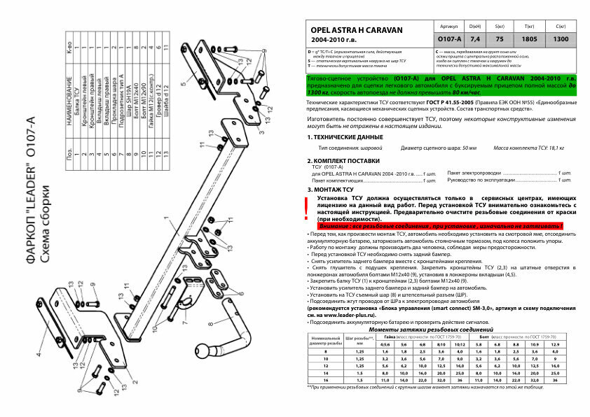 Фаркоп для Opel Astra H (Опель Астра) (A04) Caravan универсал (2004-2014) Лидер-Плюс O107-A интересное: