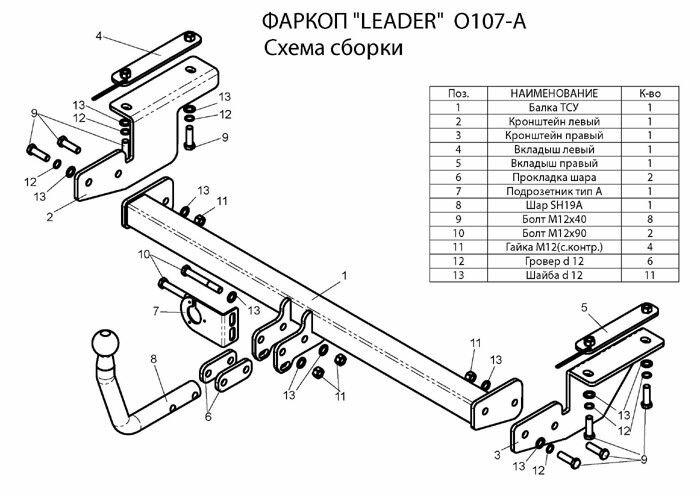 Фаркоп ТСУ для OPEL ASTRA H (A04) Caravan (универсал) 2004-2014, Лидер+ интересное: