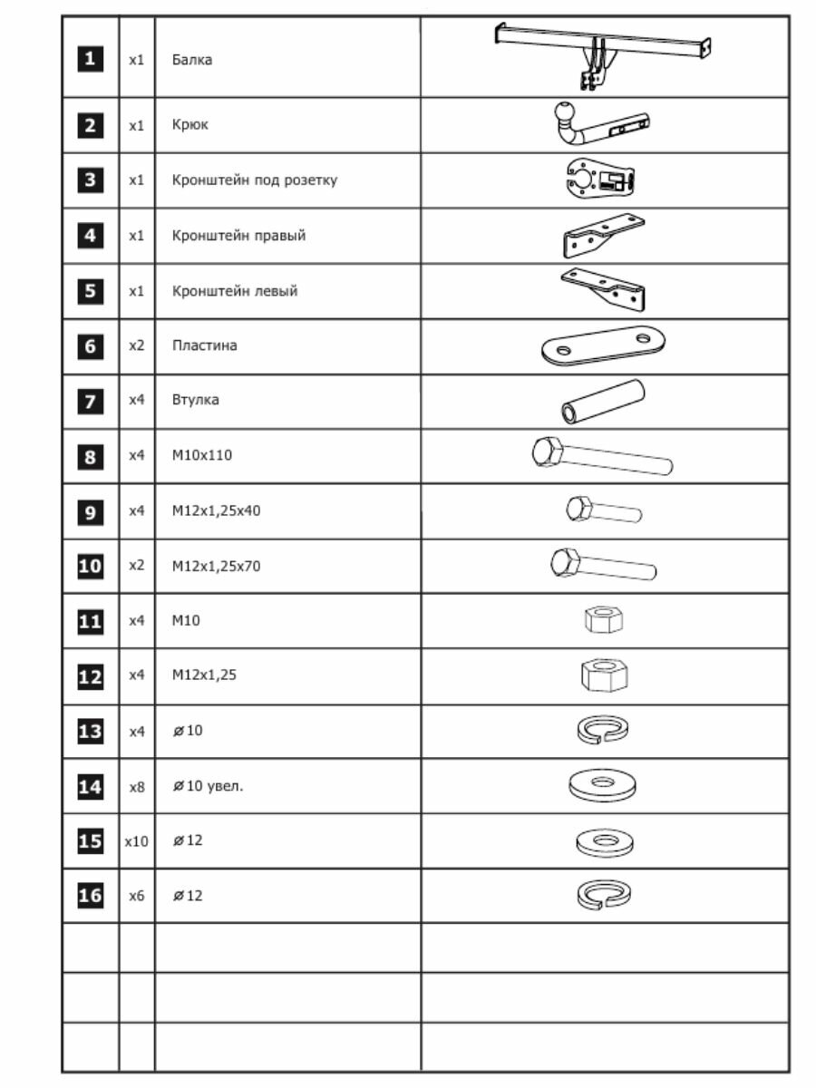 | Подробная комплектация | Комплектация фаркопа на avto Чери Тигго 9: Крюк с шаром -1 шт; Балка поперечная-1 шт; Кронштейн левый - 1 шт; Кронштейн правый - 1 шт; Пластина - 2 шт; Втулка - 4 шт; Кронштейн под розетку - 1 шт; Аксессуары: Болты, Гравера, Шайбы, Гайки; Паспорт- 1 шт; Сертификат -1 шт |