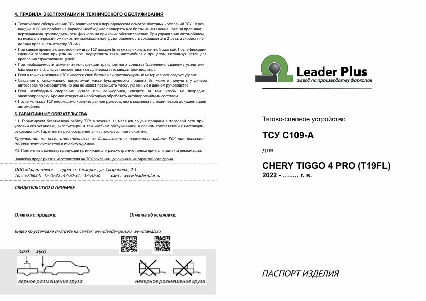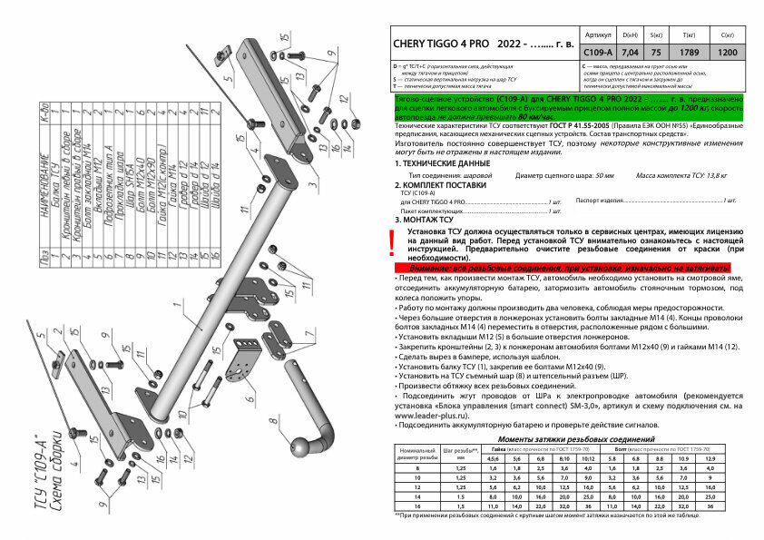 Фаркоп для Chery Tiggo 4 PRO (T19FL) (2022-) Лидер-Плюс C109-A интересное: