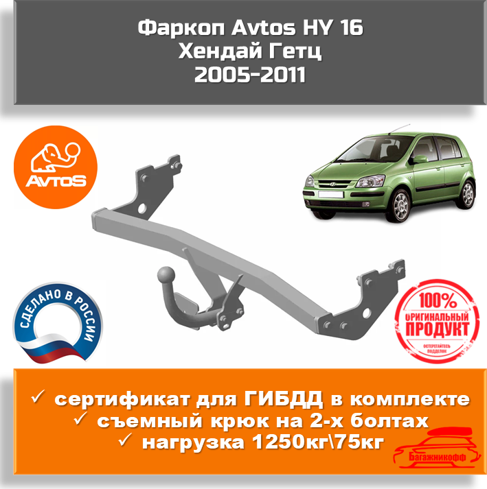 Фаркоп AvtoS HY 16 для Хендай Гетц 2005-2011 (паспорт+сертификат в комплекте) интересное:
