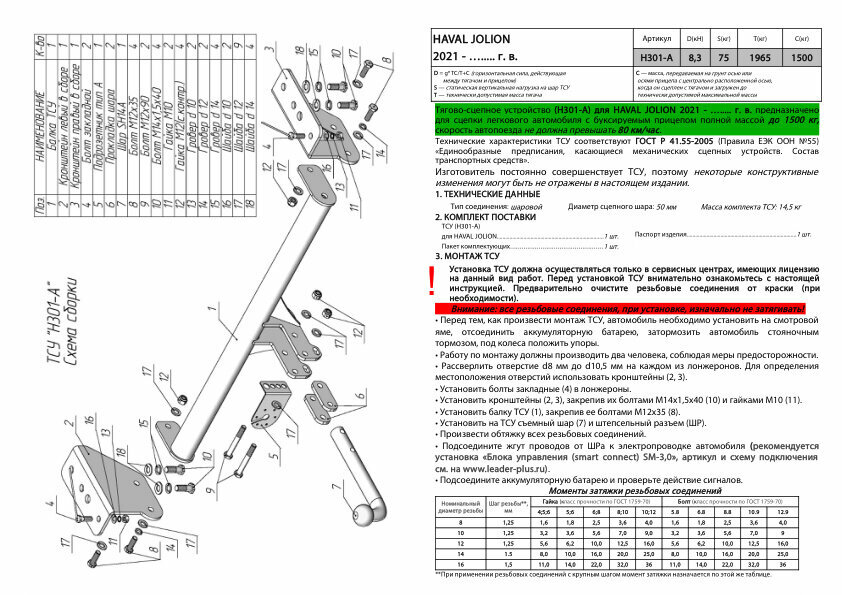 Фаркоп с электрикой Smart Connect для Haval Jolion (2021-) Лидер Плюс H301-A интересное: