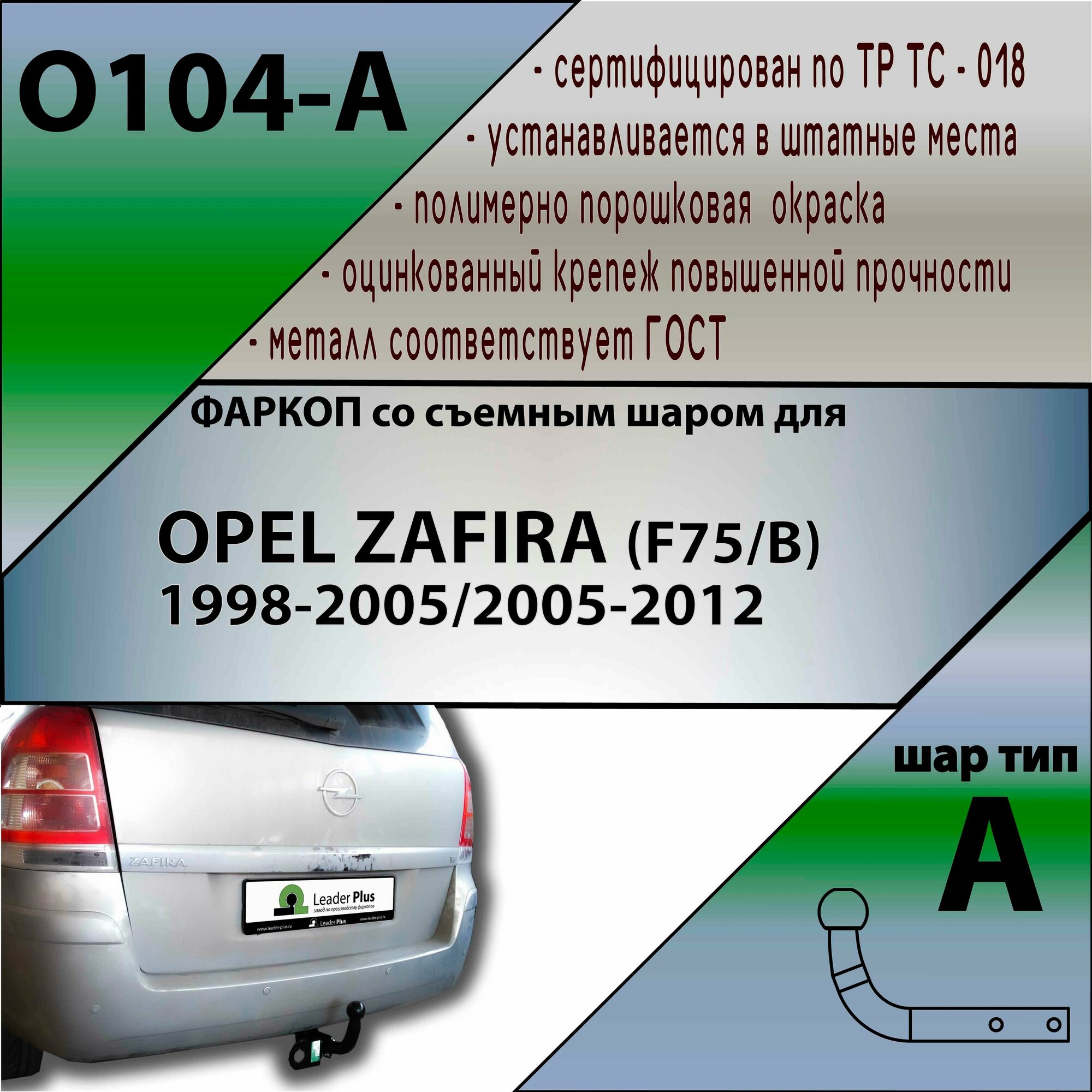 Фаркоп O104-A Лидер плюс для OPEL ZAFIRA (F75/B) (минивен) 1998-2005/2005-. (без электрики) интересное:
